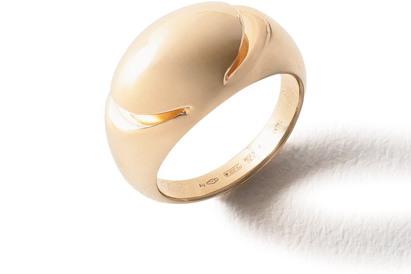 ジェムストーン見えするカボションカットをゴールドに施し、しなやかな表情に見えるよう仕上げた精巧なシルエット。フォルムとボリュームのユニークな掛け合いが調和のとれた美しさを引き出す。キーボードを打つ手にときめきながら、仕事が捗ること請け合い。