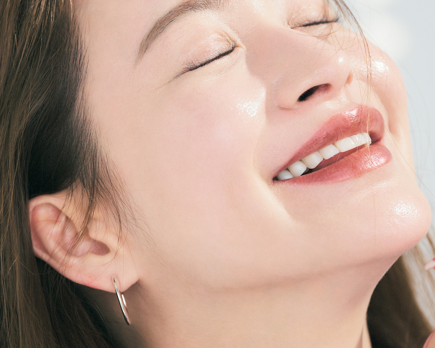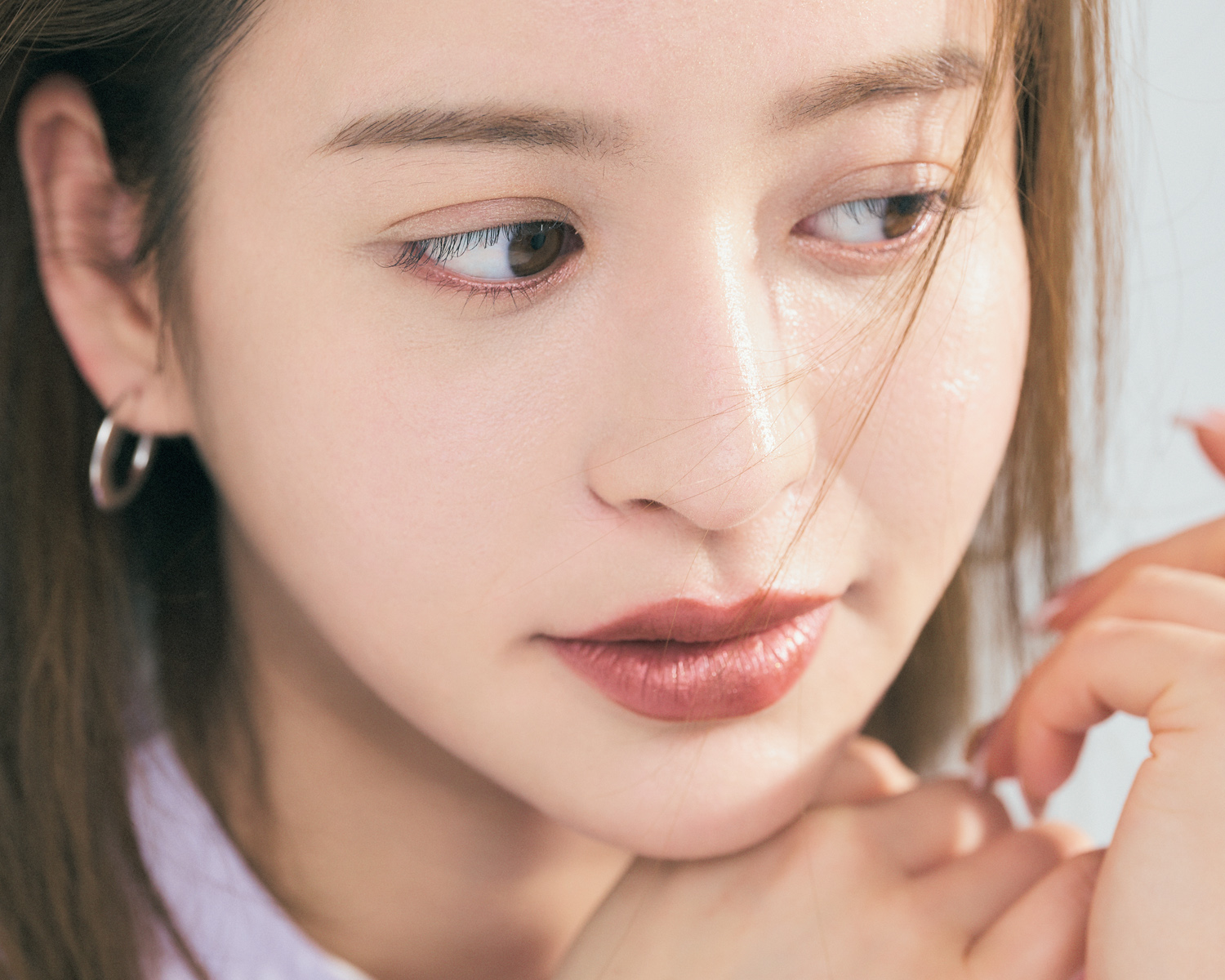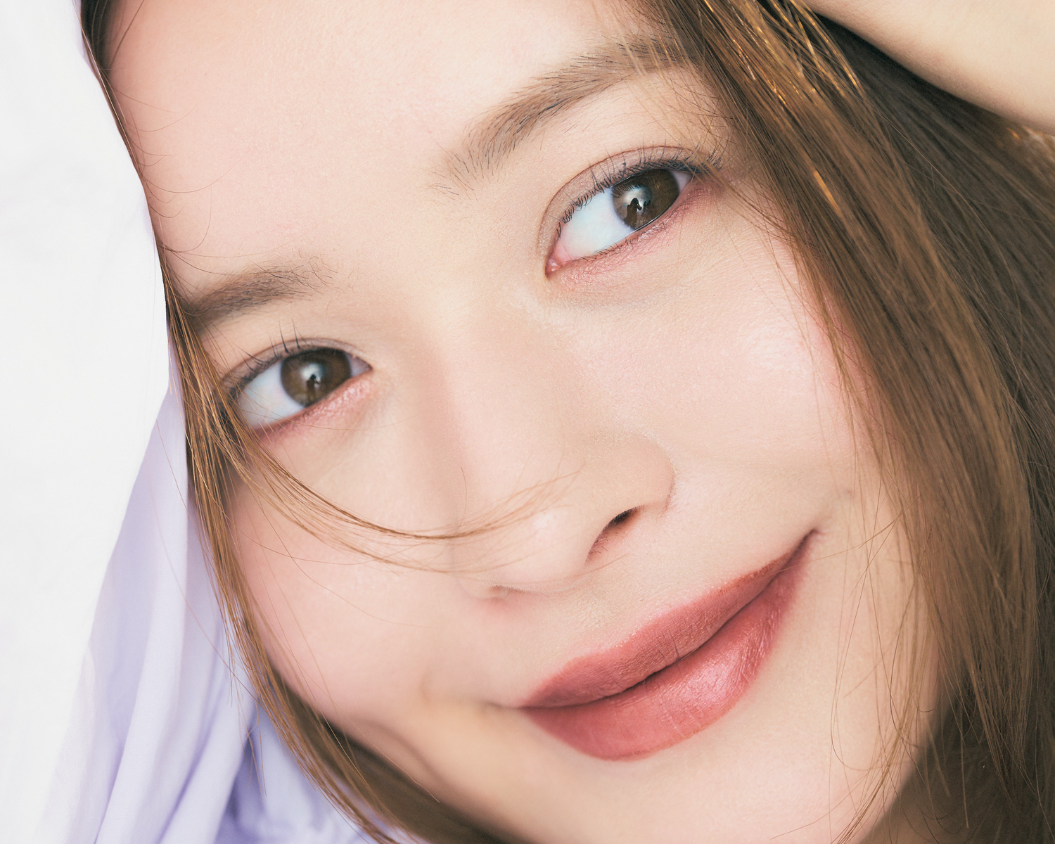 まぶたや頰はあえて色をのせないことで、透明感やピュアさを演出。くすみを見せないためにも、クッションファンデーションの選びが大切。