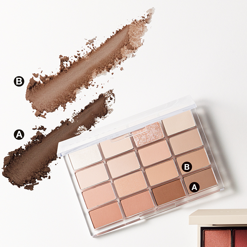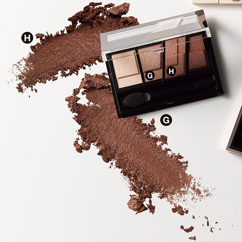 締めない目元の発信源。微差グラデが並び、隣り合った色を使えばワントーンな目元が完成。マットなテクスチャーでムラにならず、薄づきでふんわりと発色。