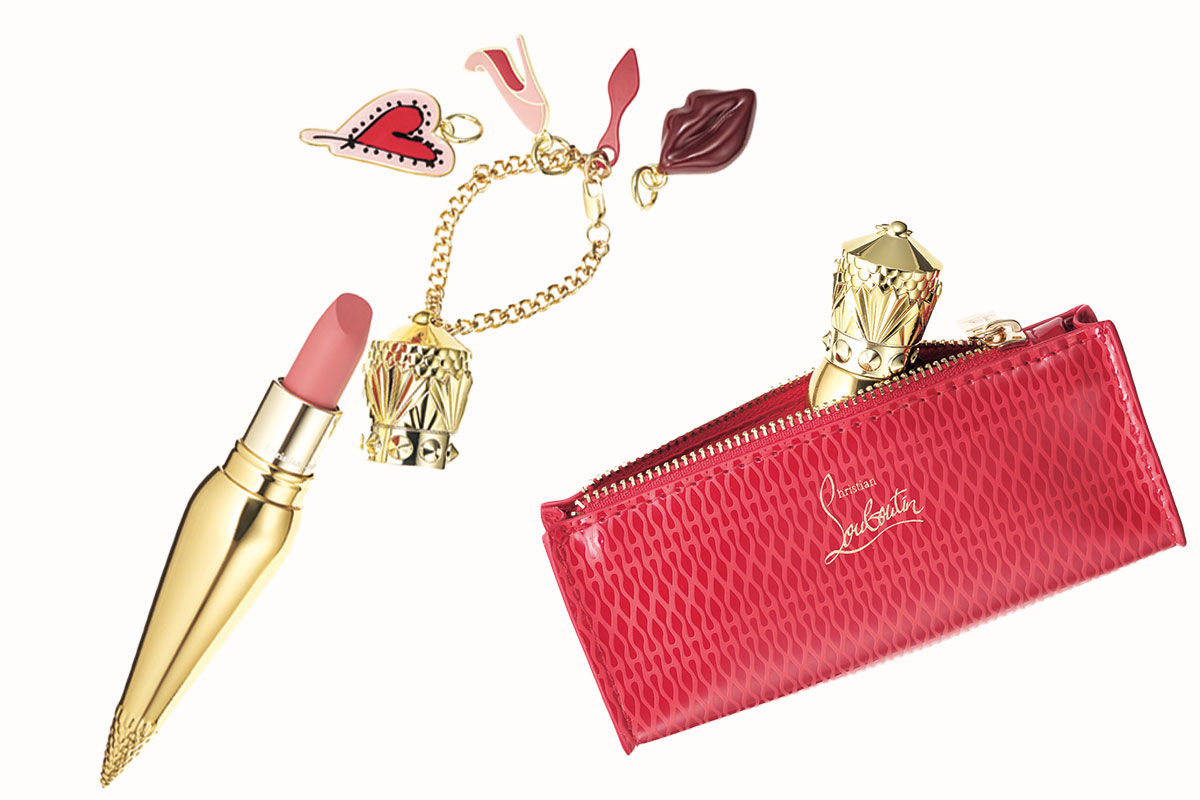 ルージュルブタンをカスタム。リップ購入で、数量限定でポーチのプレゼントも。左からハートチャーム、ヌードスティレットチャーム、バーガンディリップチャーム各¥3,300 ※限定発売(クリスチャン ルブタン ビューティ)