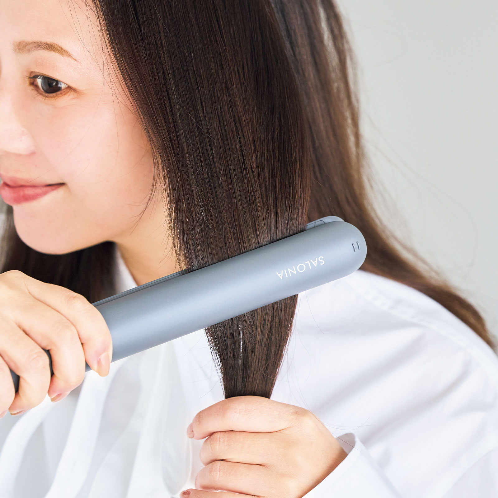 ダメージを抑えシルクのような質感に。SALONIA スムースシャイン ストレートヘアアイロン 24mm グレー¥13,200(I –ne)