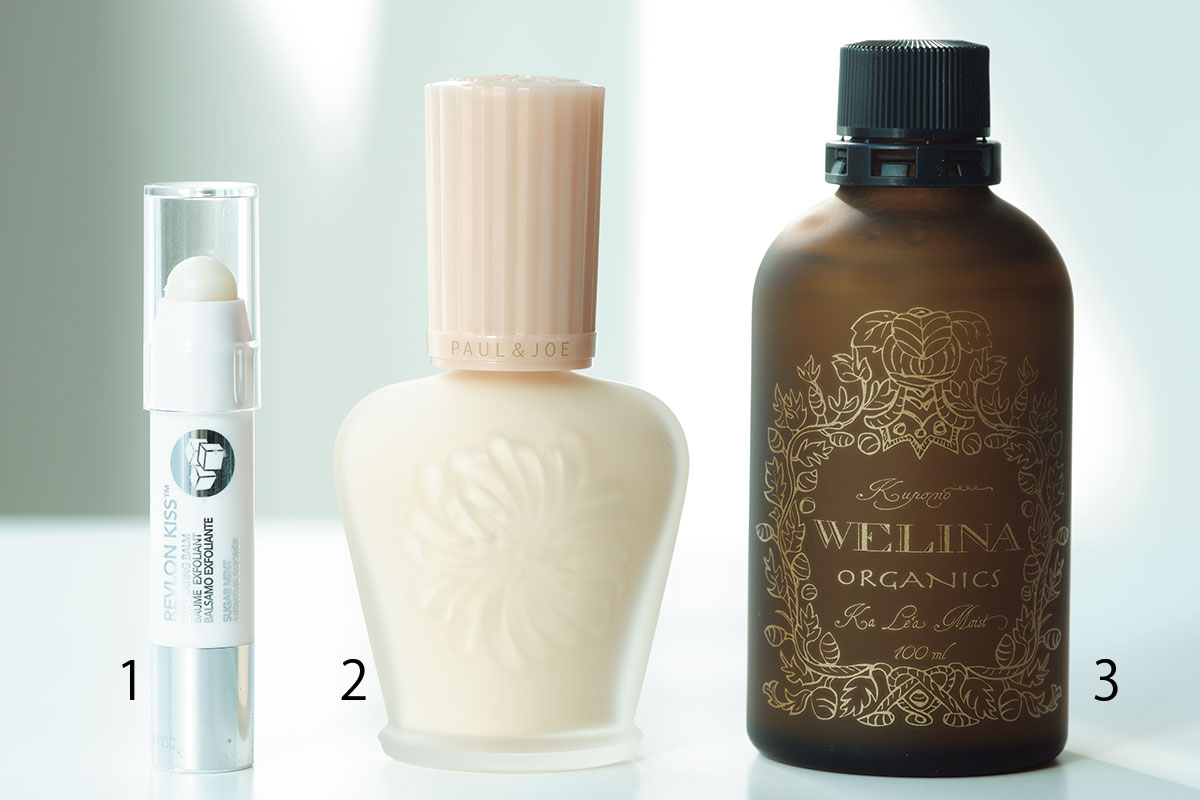 1「悩んでいた唇の皮むけがなくなりました」レブロンキスシュガース クラブ 111 シュガーミント¥880(レブロン)2「毛穴を隠してトーンアップしてくれるので何本もリピしています」モイスチュアライジングファンデーション プライマー 01 SPF15/PA+ 30ml ¥3,850(ポール&ジョーボーテ)3「アレルギーが爆発していたときに唯一使えたお守り化粧水」ウェリナ カレア モイスト 100ml ¥3,520(ウェリナオーガニクス)