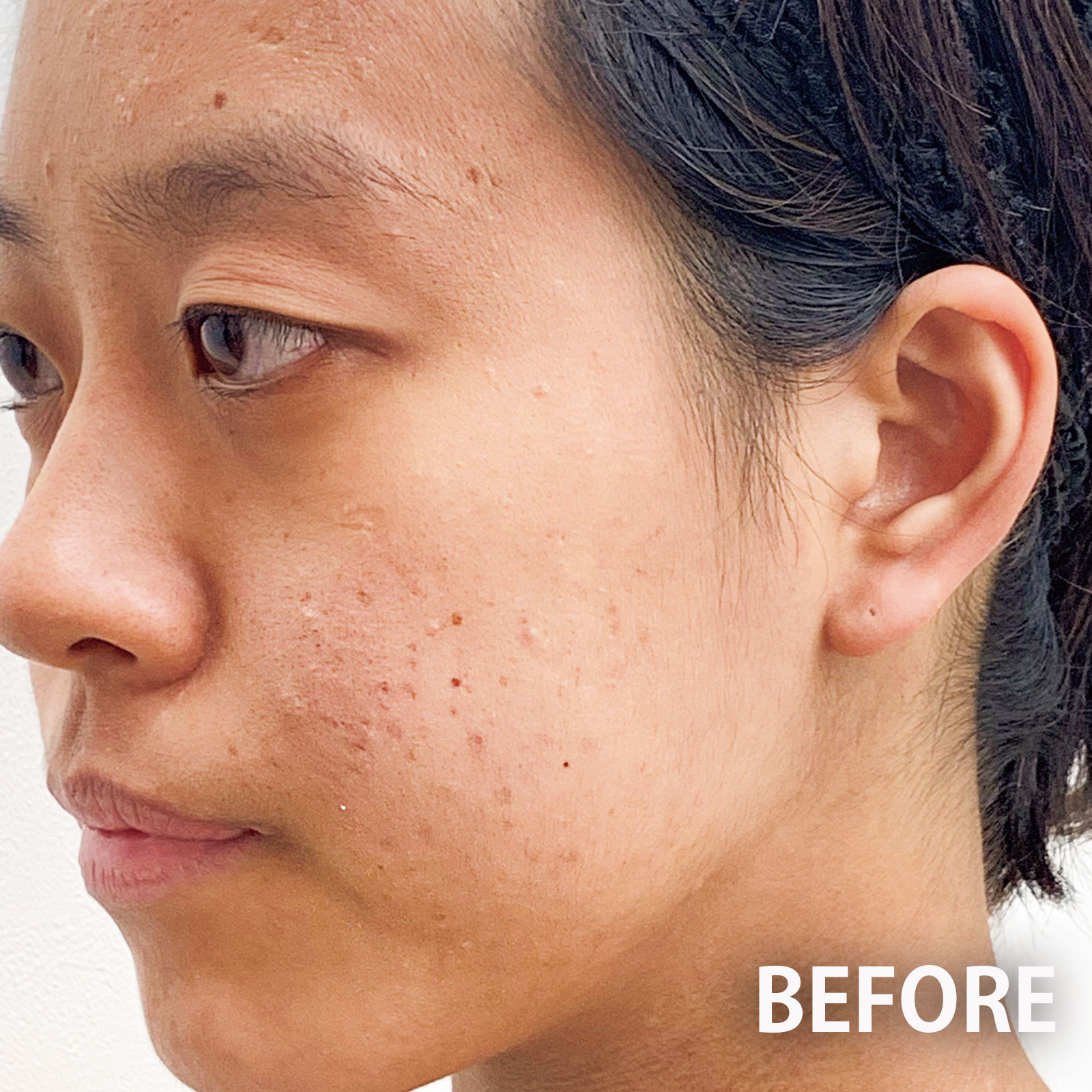 まずはFDA公認の胎盤由来のコラーゲン性の膜から作られているアムニオジェニクスをダーマペンで入れ込む施術。アトピー症状が改善しテクスチャーも◎。