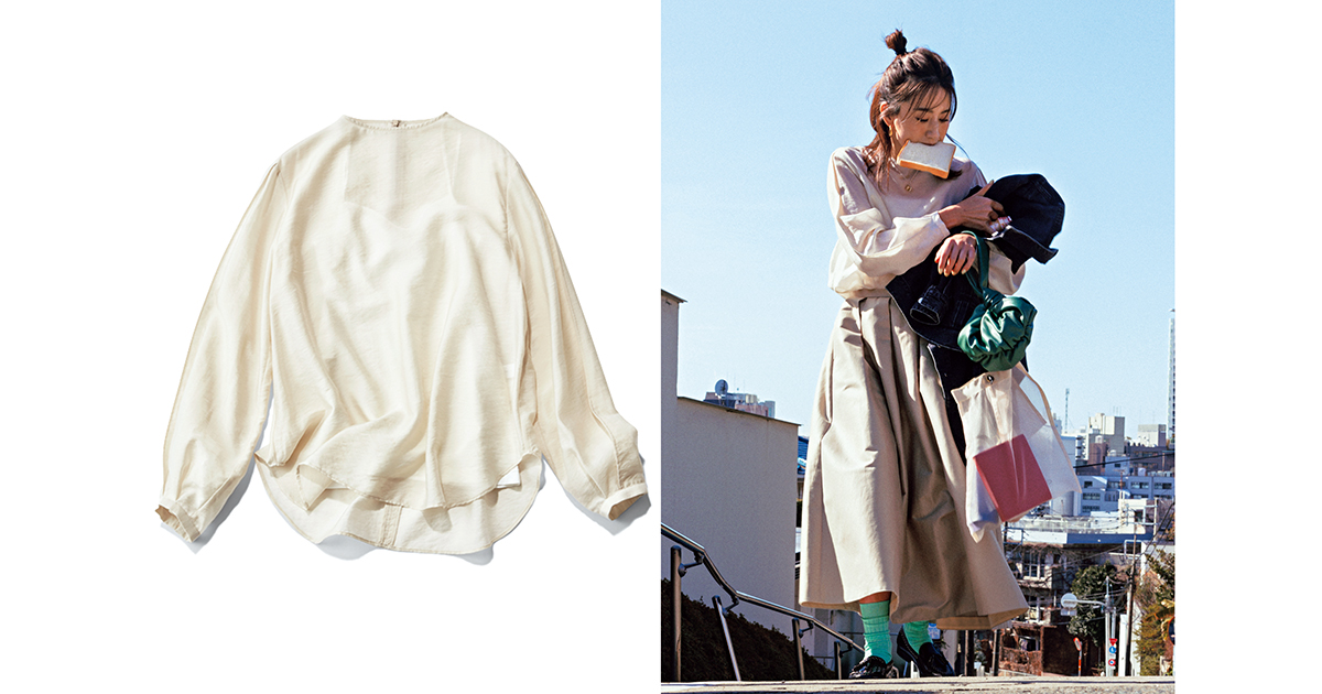 ▶︎春トップスは“地厚”が便利!一枚で着られるオシャレブラウスに注目