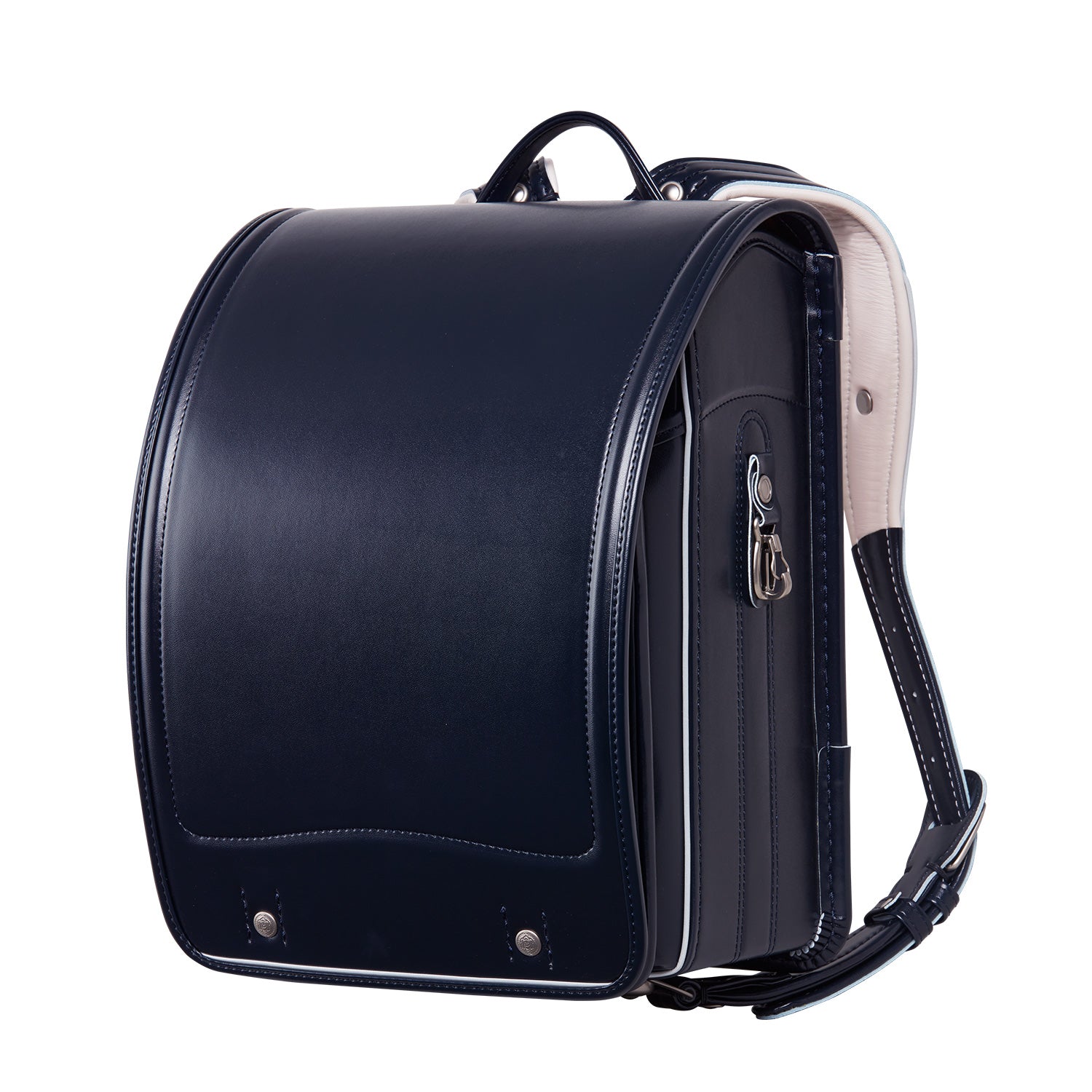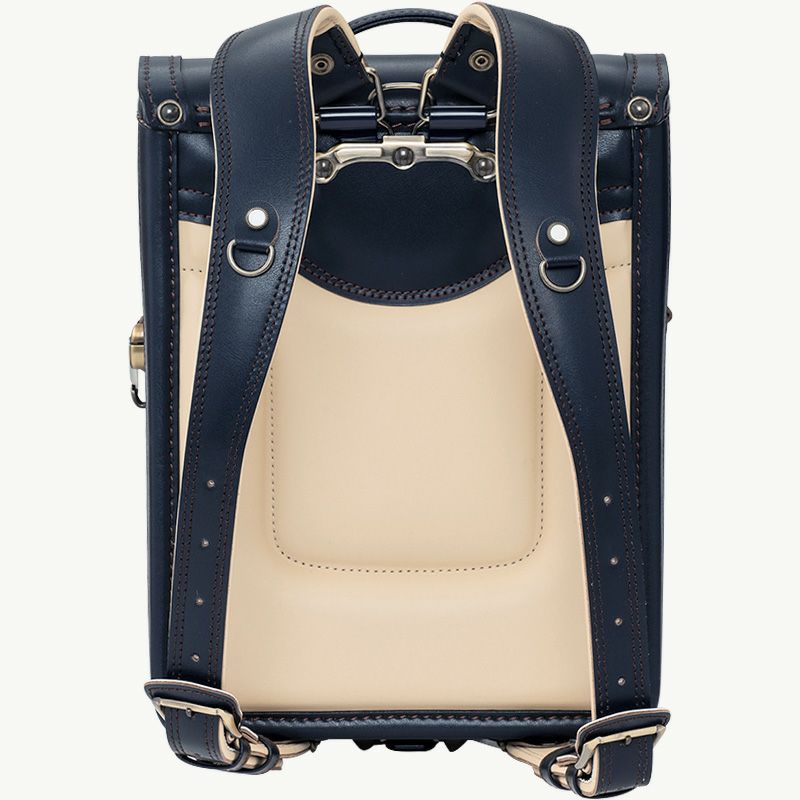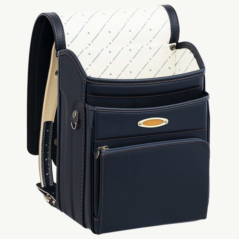 牛革のしなやかさと美しい表面感を表現したクラリーノ®エフ素材。気品溢れるルックスに上品な発色が魅力。A4フラットファイルをしっかりおさめながら、ふた側をやや狭くすることで背負った姿もスッキリと美しく見せてくれます。優しいホールド感のあるベルトや通気性がよく蒸れない背当てなど機能性も抜群。ベーシックシリーズ・クラリーノ® ランドセル[色:紺、主素材:クラリーノ®エフ、重量:約1,120g]¥63,800(大峽製鞄)