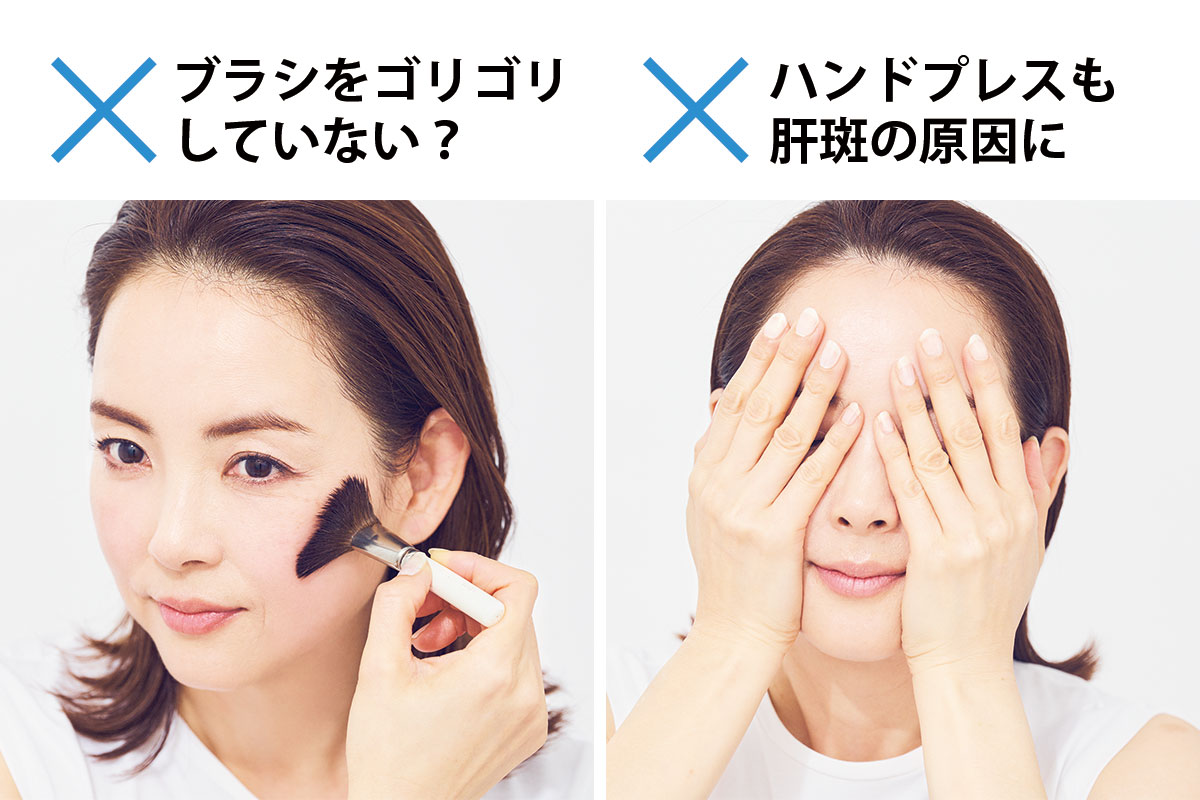 「メークするときブラシをゴリゴリ押し付けたり、力を加えていませんか?その習慣がくすみやシミを引き起こします」(桐野)