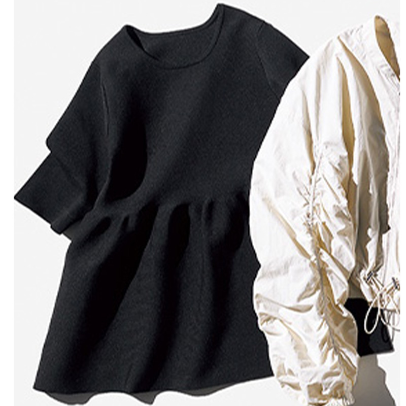 「衝撃の高コスパで甘トップスが見つけられる!ミニマルな黒のペプラムトップスなら間違いなし」黒ペプラムニット¥2,490(coca)