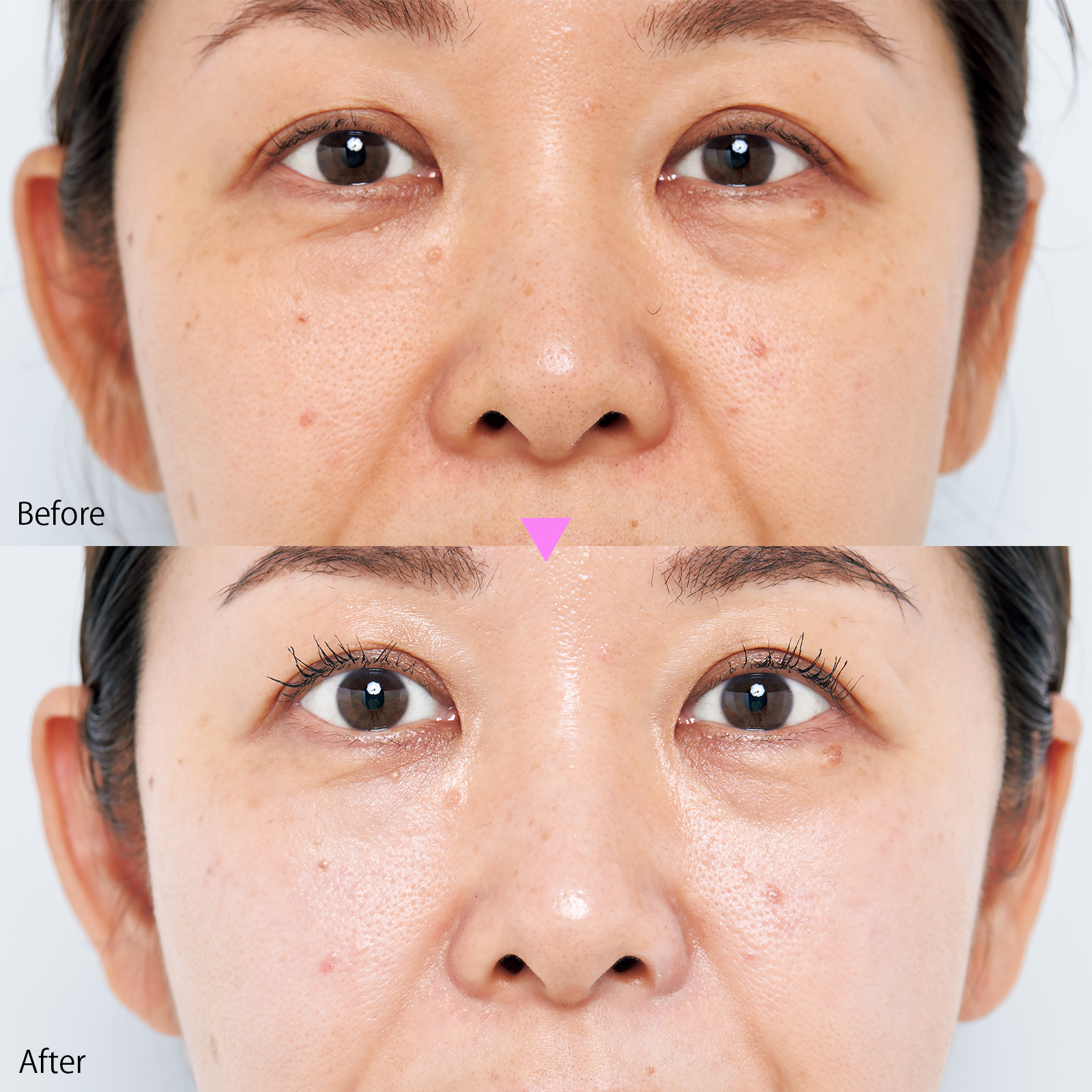 日焼け前からあったクマっぽい目の周りのくすみも薄れ、明るく若々しい印象に。