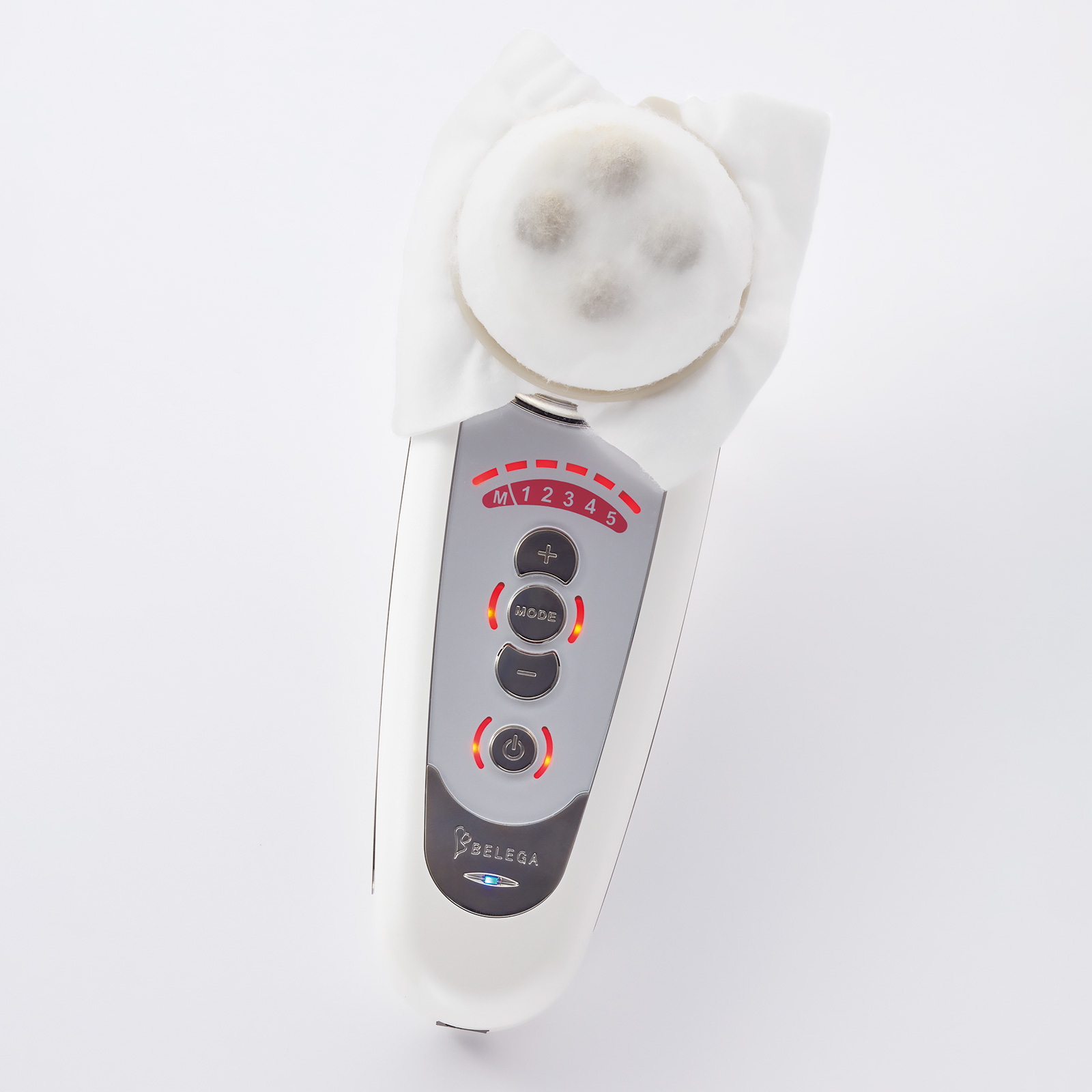 コットンをセットして肌にオン。エレクトロクレンジング・マイクロカレント・表情筋を動かすEMS・美容成分を肌に入れ込むディーポレーションの4つのモードが。