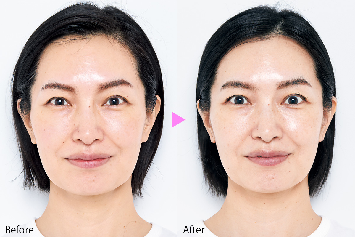 左頰のもやもやとしたくすみが薄く、赤みも気にならなくなった。ハリのあるイキイキとした印象に変化。