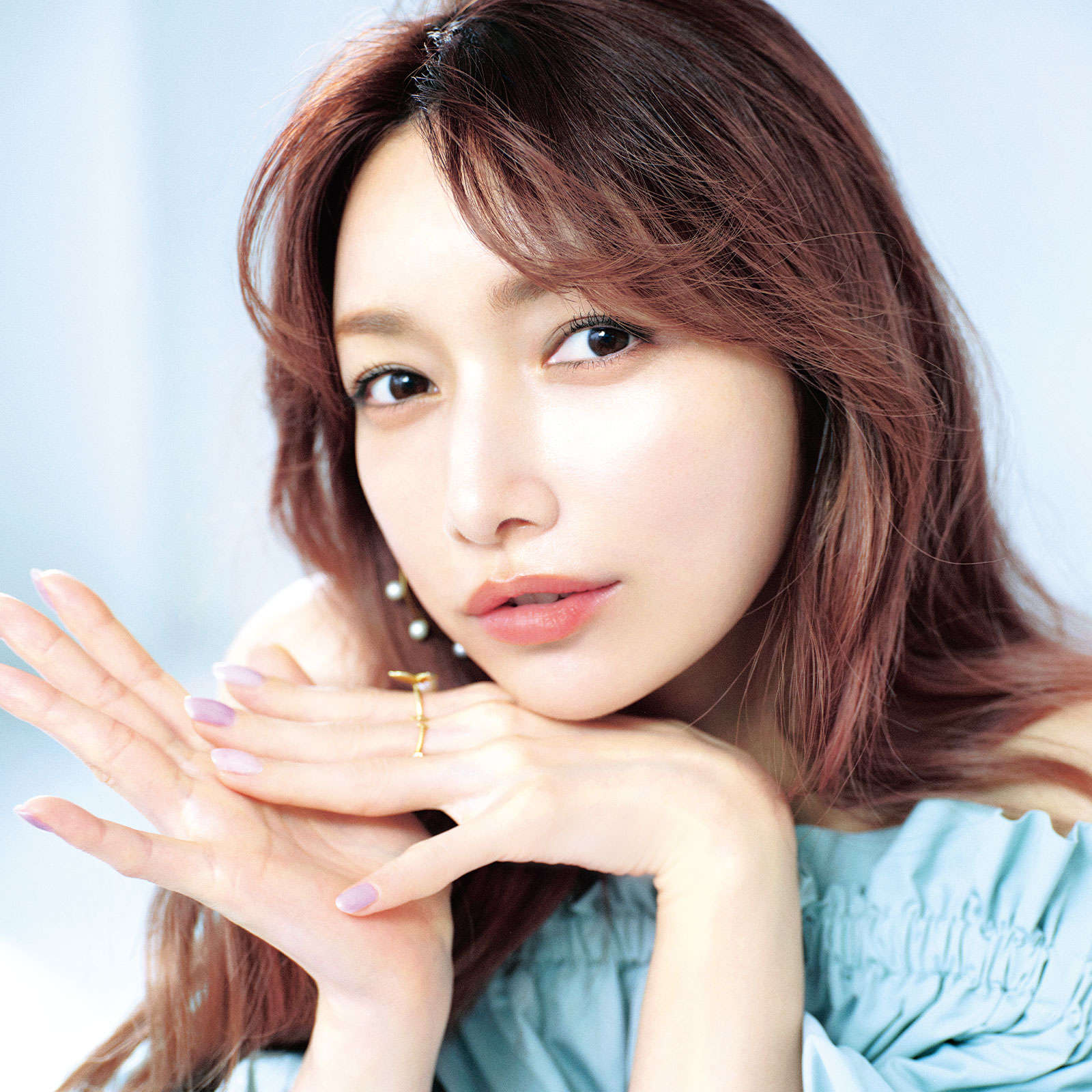 理想は、一点のくもりもないヘルシーな水光肌。体が健康でないと肌も正しく機能しないから、内と外のケアがマスト。基本のスキンケアは、化粧水→パック→美容液→クリーム。水分を与えて蓋をするだけでなく、美容液成分を取り入れて栄養を与えることを意識しています。疲れている日も変わりません。やらないと落ち着かないし、昔から肌のことでは絶対手を抜かないんです。内側から巡らせて排出を促すことも意識。