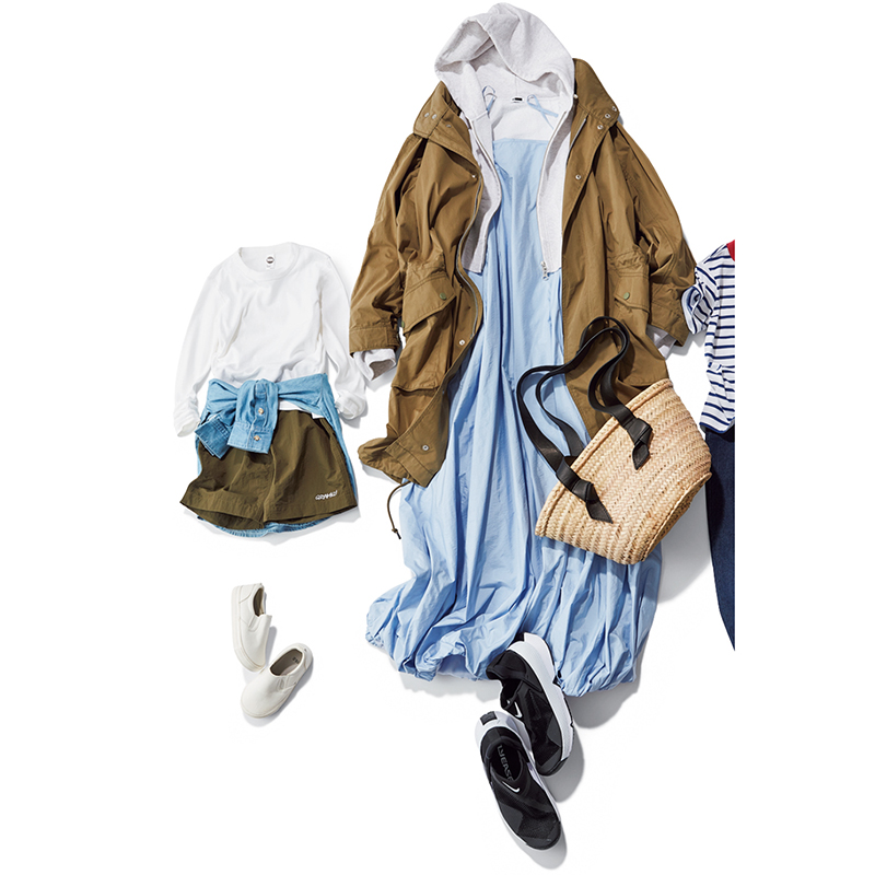 いつも以上に汚れが目立たない目線だと、みんな同じような地味色カジュアルに陥りがち。同じアイテムもシャーベットカラーにスイッチして、一気に可愛げアップを狙って!