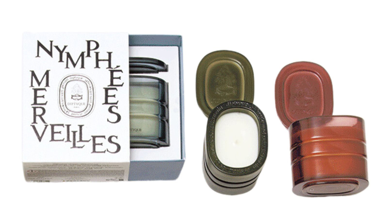 右から/「レ モンドドゥ ディプティック ラ フォレ レーヴ(森の夢)」「同タンプル デ ムース(苔寺)」「同ナンフェ メルヴェイユ(驚きの庭園)」各[270g]¥36, 960 (ディプティック)