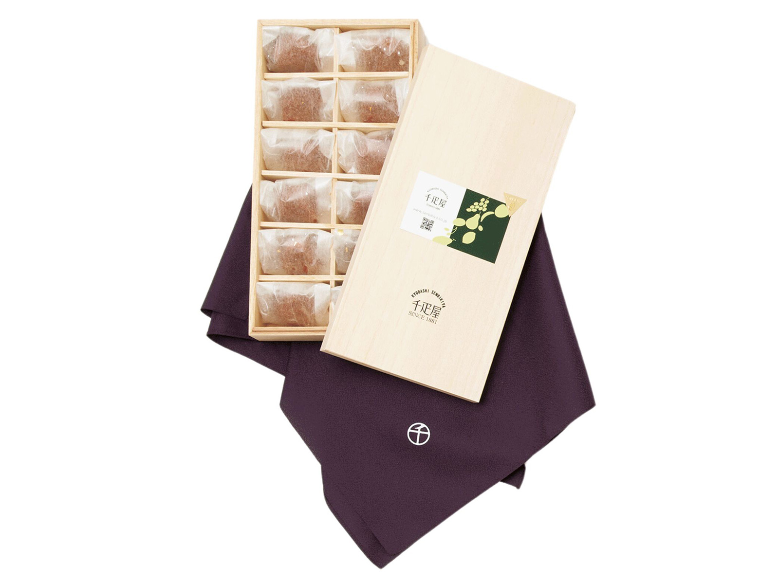 「ふくふく」木箱入り風呂敷包み[12粒]¥10,800(京橋千疋屋)