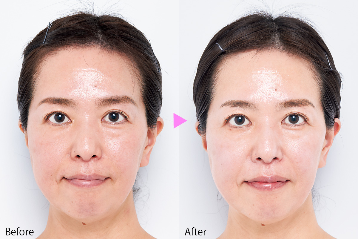 悩みの赤みとくすみが収まり、肌全体のトーンがアップ。目周りの影が薄くなり均一な印象へ。