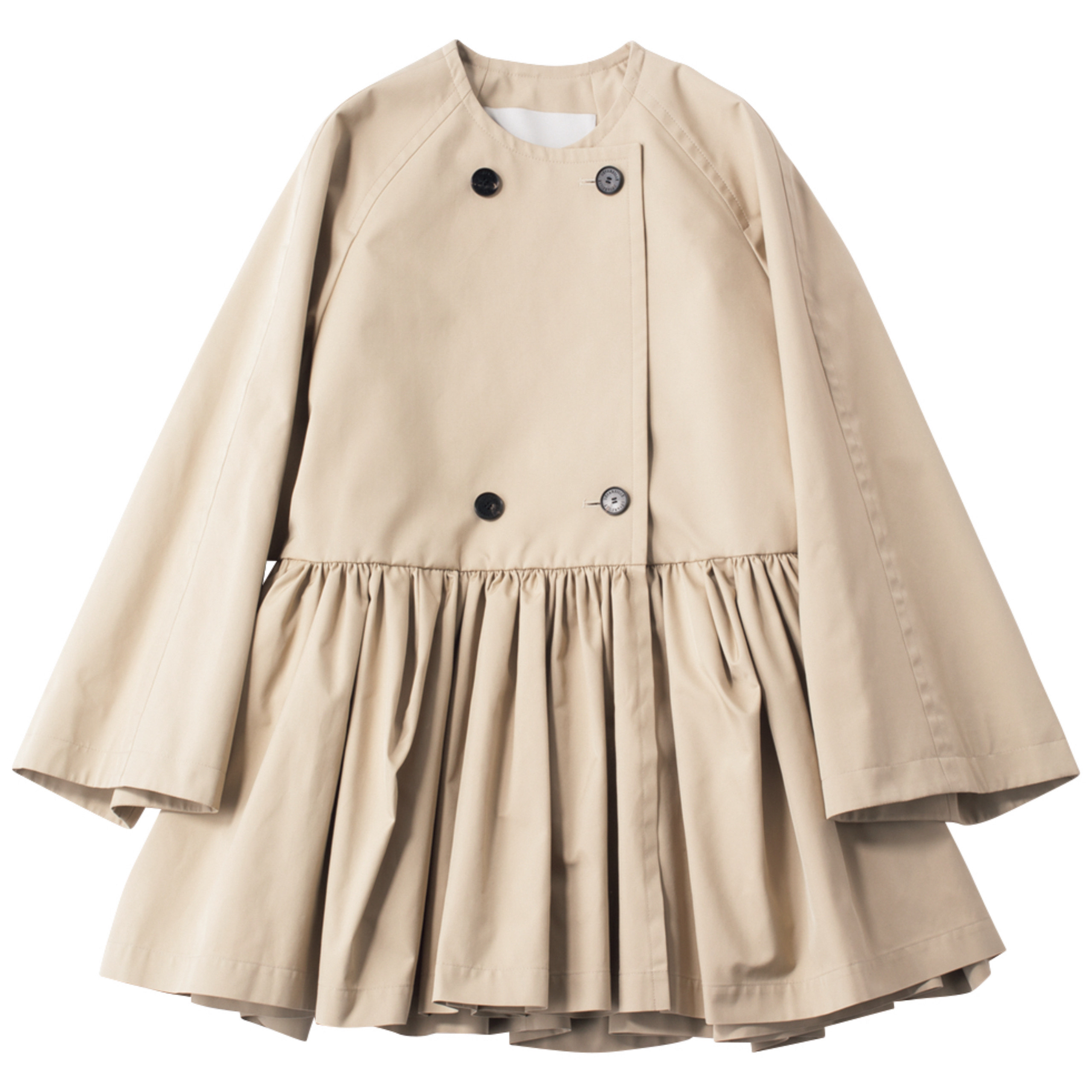 贅沢なギャザーやベルスリーブでリッチなコーデに仕上がります。トレンチを差し替える感覚で取り入れて。アウターはデパリエ。