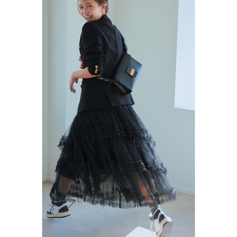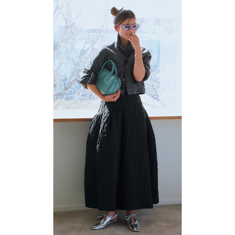 *VERY2024年4月号「【大特集】復職ママも、入園入学ママも楽しくいこう♡ スカート上手な人から、春が来る! Part5 送迎ママは、黒紺ふんわりスカートで脱生活感オシャレ」より。