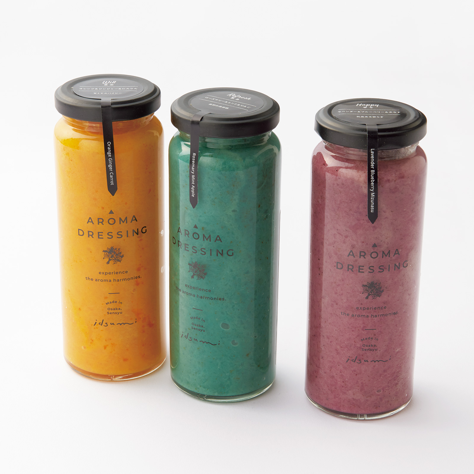 何を差し上げるか迷ったときは、ヘルシーな食べ物を手土産にすることが多いです。香りを楽しめる11種類のアロマドレッシングは、野菜を美味しく食べられるので、健康志向の先輩や両親にプレゼントしたら大好評でした♪ ドレッシング[各200ml]左/オレンジ&ジンジャー&にんじん¥864 中/ローズマリー&ミント&りんご¥918 右/ラベンダー&ブルーベリー&水なす¥864 (いずみピクルス)