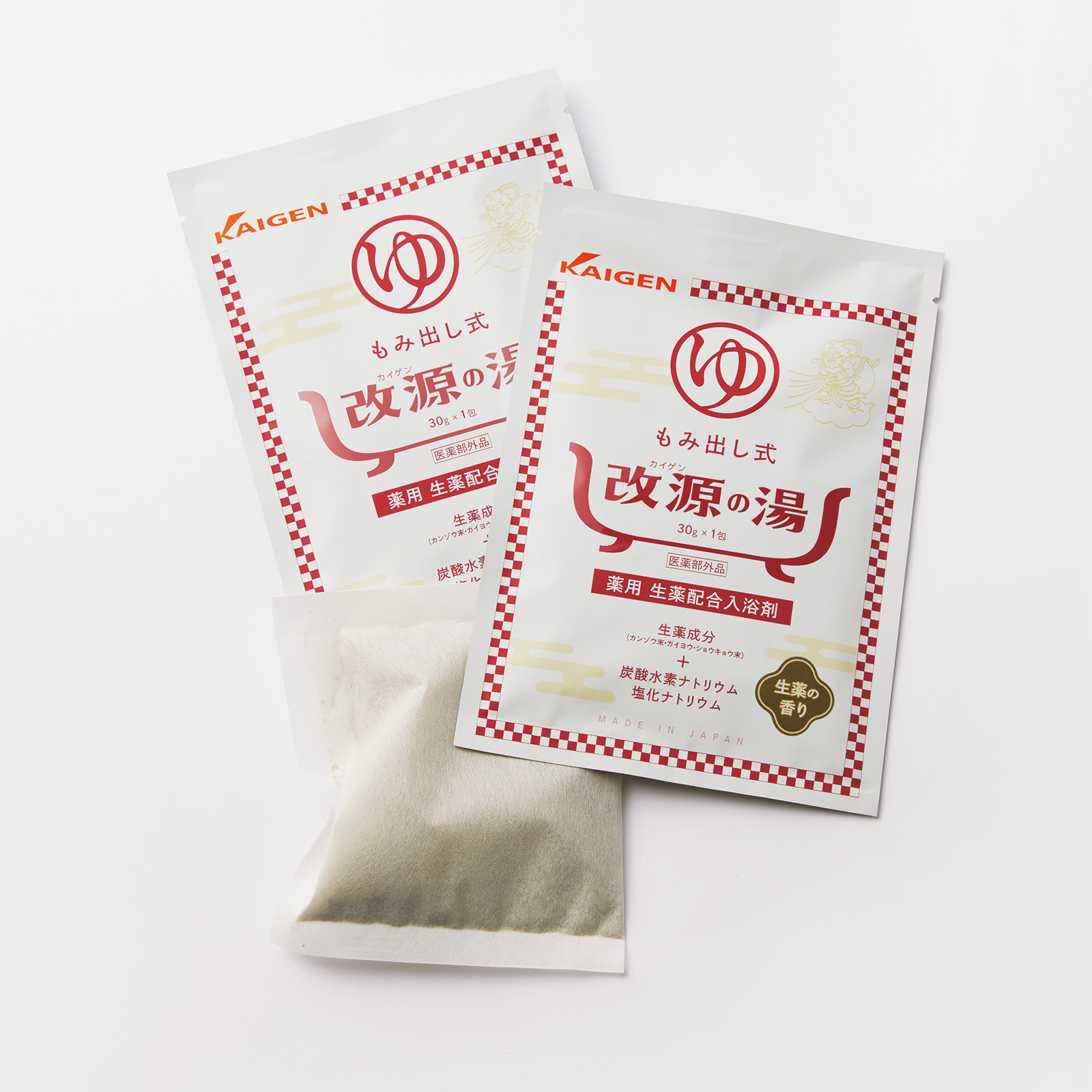 手土産は渡したときに会話のツールになる物を選ぶのも手。パッケージにインパクトがある「風邪に改源」でお馴染みの薬用入浴剤は、生薬の作用でポカポカ体が温まるので、冷房で体が冷える時期におすすめの手土産です。入浴剤〈医薬部外品〉各[30g]¥385(カイゲンファーマ)