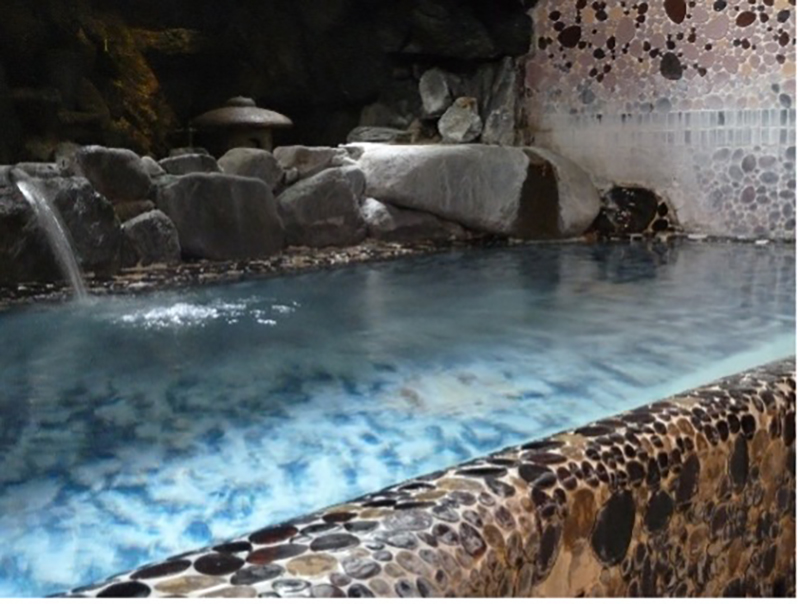温泉はPH9.8で特にメタケイ酸が豊富に含まれているので、古い角質を落とし新しい肌を再生させる力があります。無色透明で硫黄の匂いなどは全くありません。