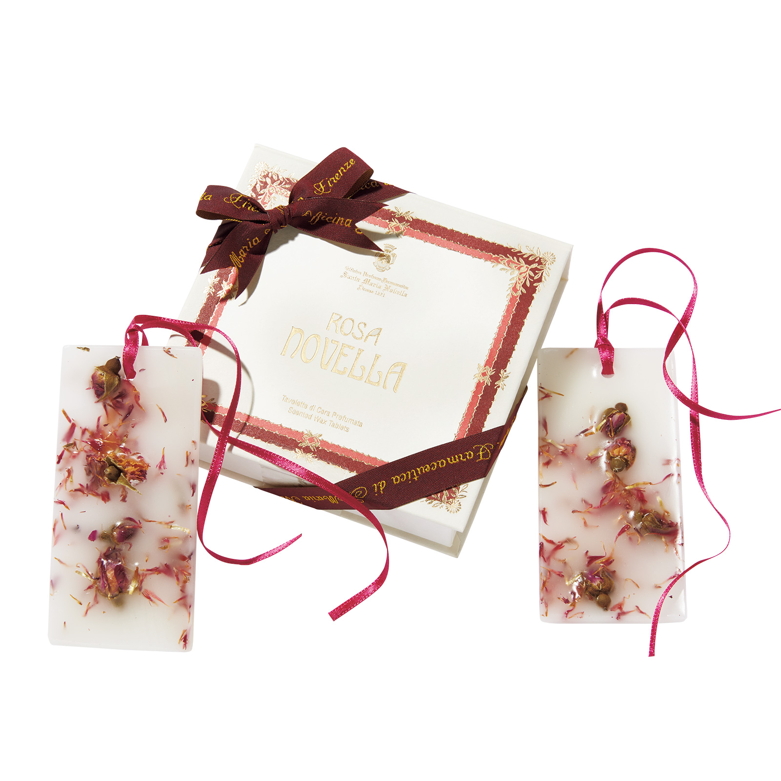 香りの種類が多く、クローゼットや玄関、車など用途が幅広いので男性にも好評。「タボレッタ ローザノヴェッラ」2枚入り¥4,400 (サンタ・マリア・ノヴェッラ)