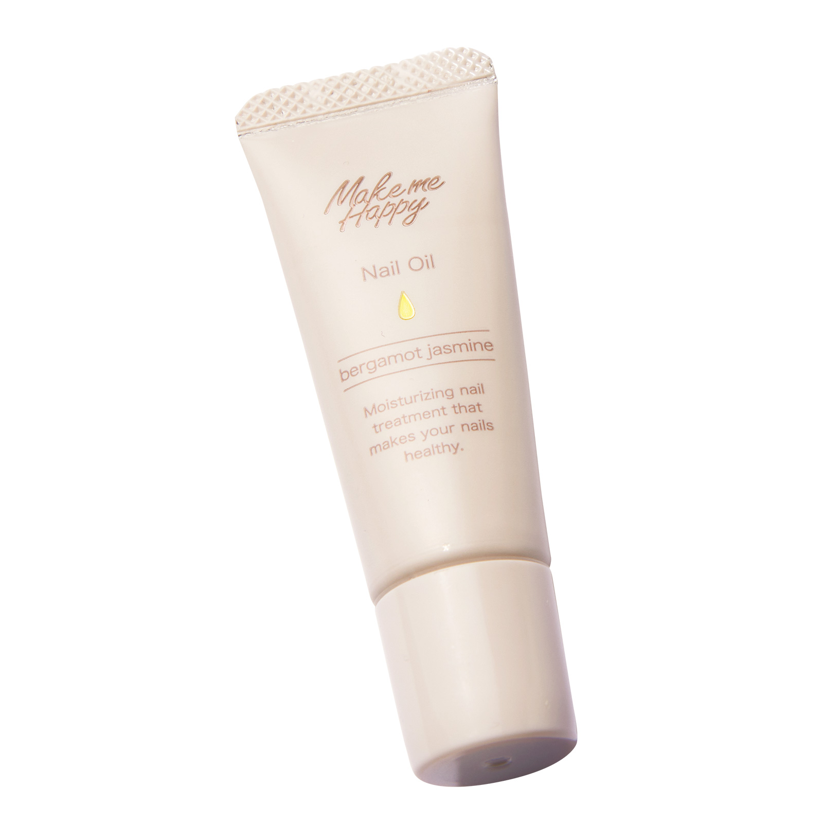 爪と甘皮を保湿するフレグランスネイルオイルは低価格ながら箱付きでプチギフトとしてコスパが最高。「メイクミーハッピー ネイルオイル」bergamot jasmine[9ml]¥770 (井田ラボラトリーズ)