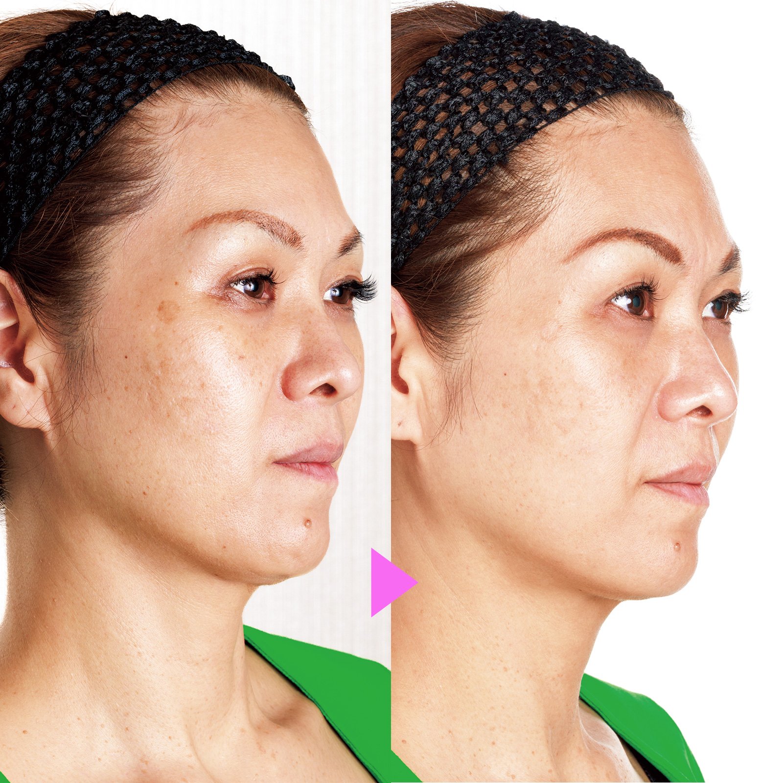 ピーリング後に光治療。「施術中は脱毛よりも強めの刺激が顔全体にありましたが、夜にはほぼなし。シミが薄くなっただけではなく、光治療を通して肌が全体的に明るくトーンアップして嬉しい」会社代表・舞川るみさん(49歳)
