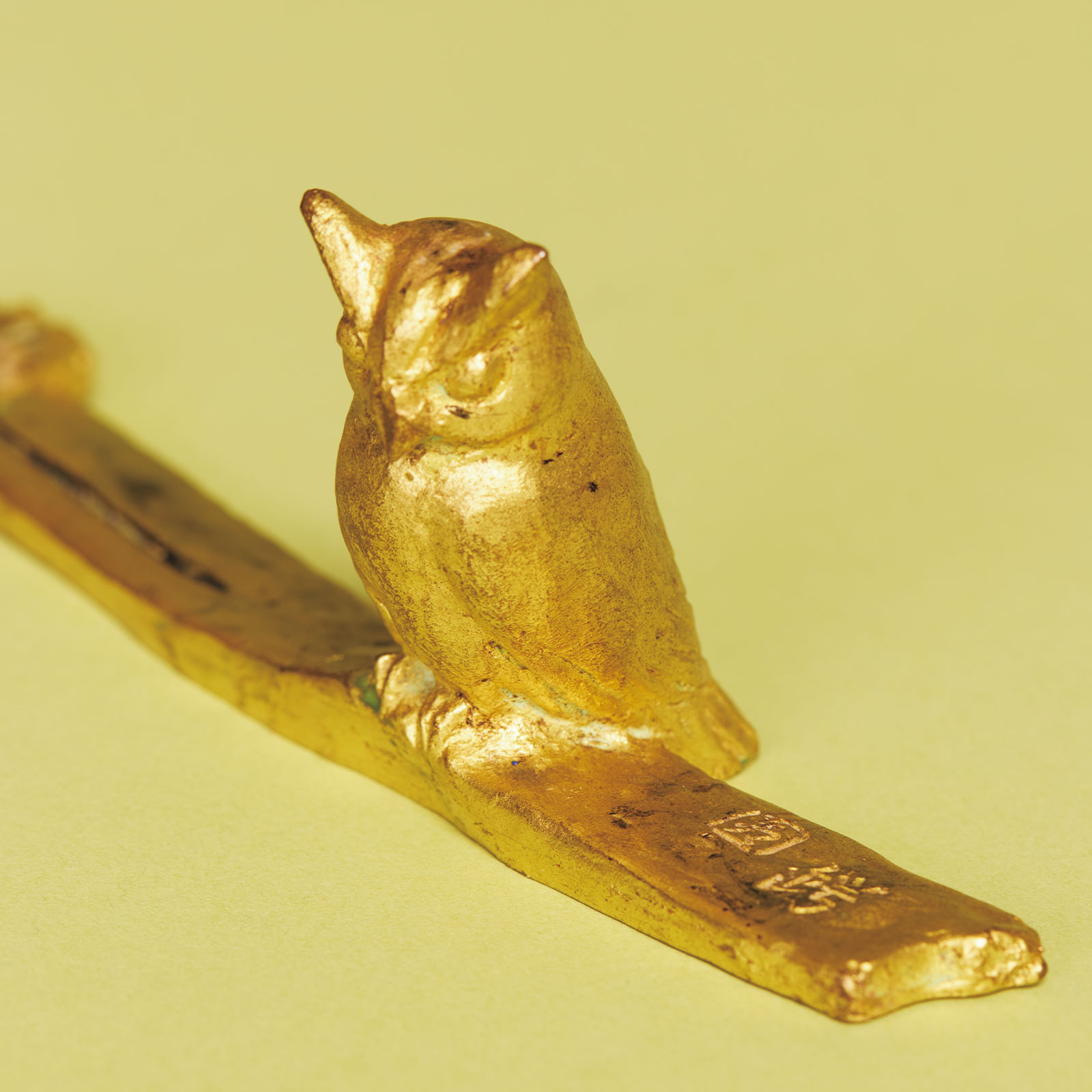 タヒチで結婚式を挙げたのですが、彫刻家・圓鍔勝三(えんつばかつぞう)さんの個展で「南の子」という作品に出合い、ご縁を感じて購入。その際いただいたふくろうの文鎮。意外に重宝しています。