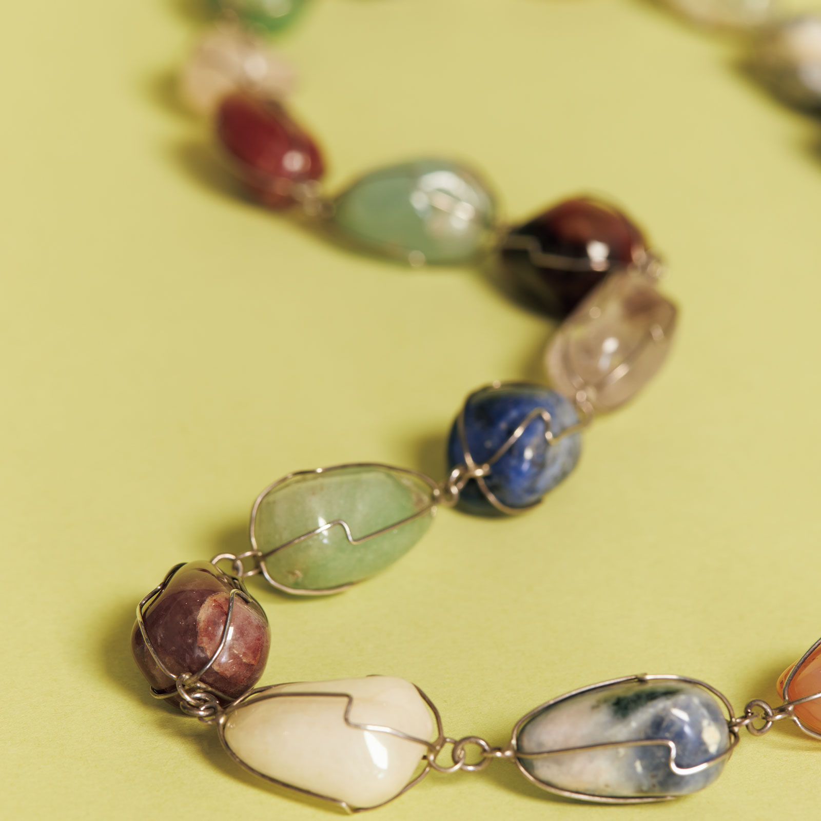 撮影でブラジルに行ったとき、ひと目で気に入り、清水の舞台から飛び降りる気持ちで買った原石のネックレス。こういうプリミティブなものが大好きで、今もよくつけます。