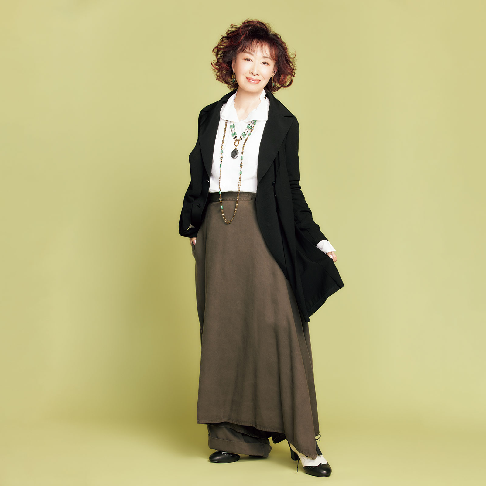 若い頃は鈴木紀男さんなどのオートクチュールばかりでしたけど、ある日、知人に「三田さんは自分で崩したファッションはできないでしょ?」と言われたのが悔しかったのと、子どもたちと一緒に歩くと、ファッションのギャップを感じて。その両方の理由で50代終わりからファッションが若返り、既製品を楽しむようになりました。