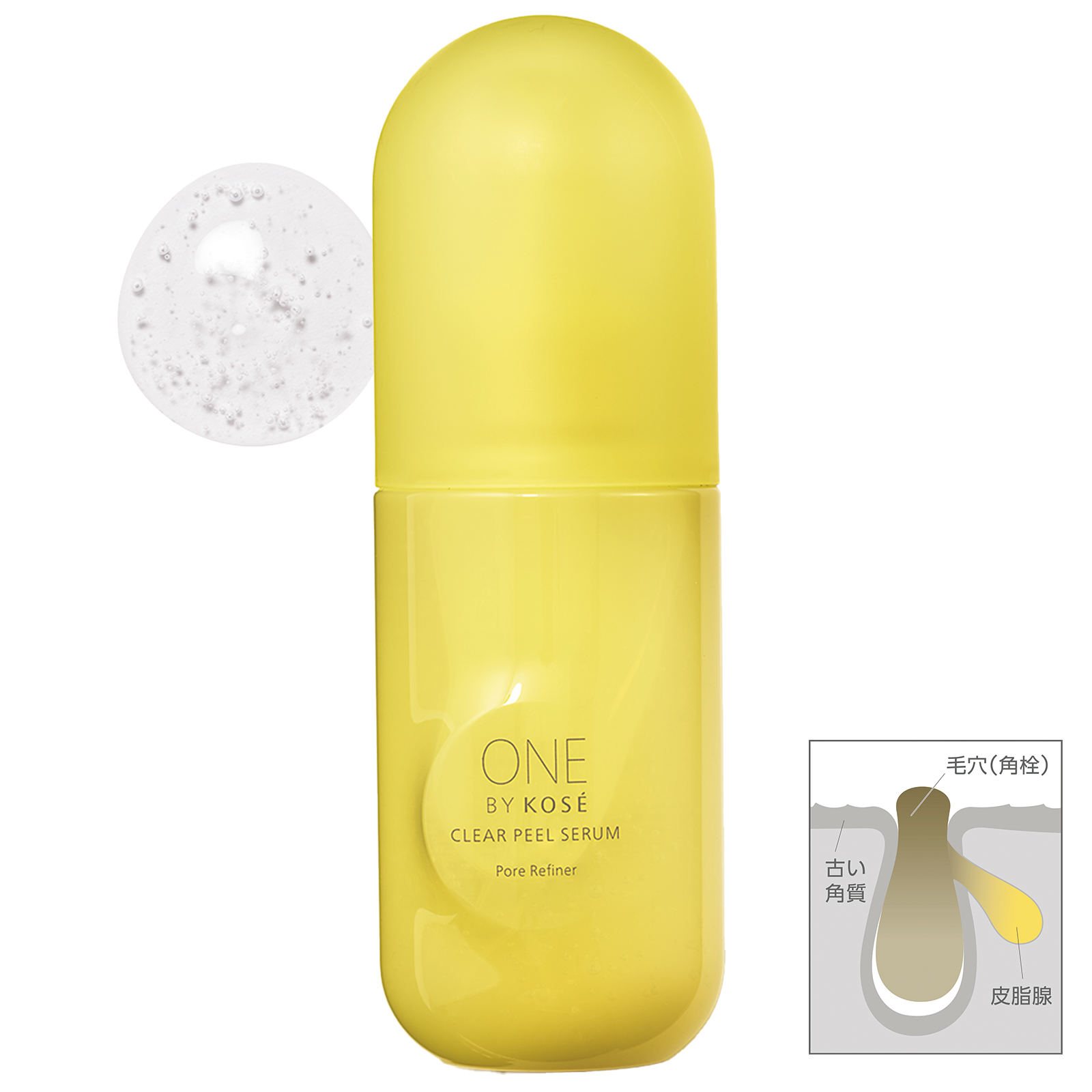 毛穴悩みに先手を打つふき取り美容液。トレハロース、ビタミンE誘導体等配合。ONE BY KOSÉクリア ピールセラム 120ml ¥3,850〈編集部調べ〉(コーセー)※5/16発売