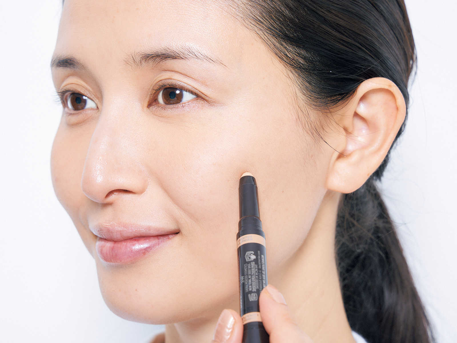 「大人にとってコンシーラーは必須アイテムと言えます。クマやシミ、赤みなどの色ムラカバーはもちろん、ハイライト効果でリフトアップも!ただ完璧に隠そうとミクロな視点になりすぎると、厚塗りになり老け見え。ファンデとパウダーをミルフィーユ状に重ねて、70%カバーを目指して。」
