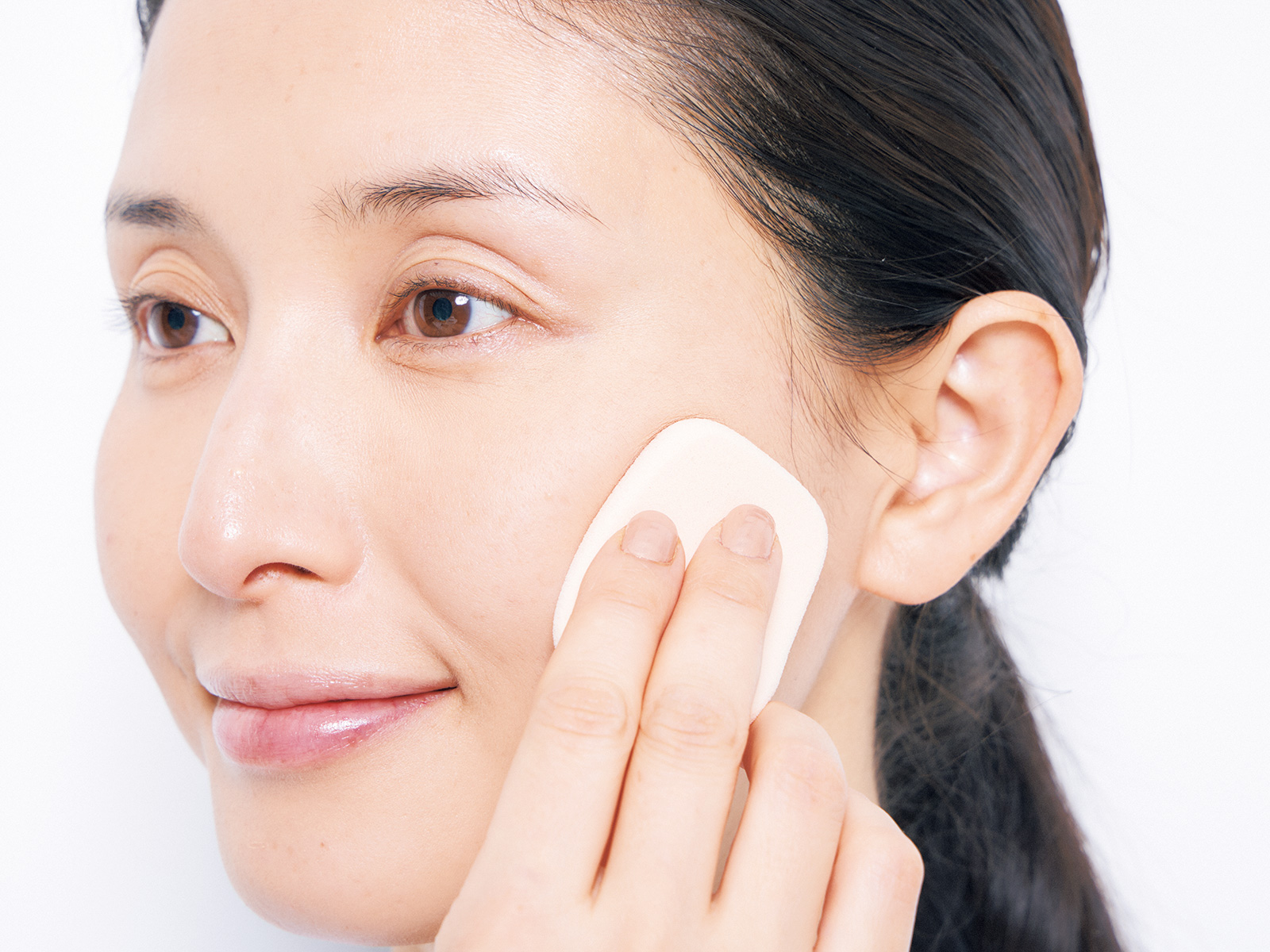 馴染ませは、指の第二関節くらいまでを使って広めに。仕上げのパウダリーファンデは優しくプレスするように塗り、周りはフェイスラインまで伸ばして。