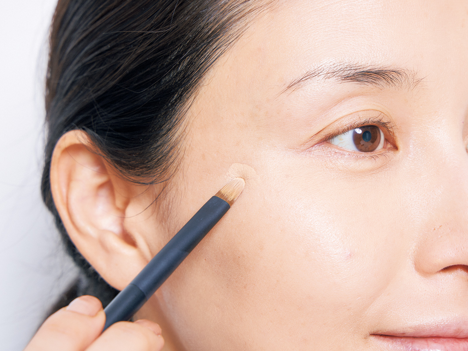 リキッドやクリーム、クッションファンデなら先に塗り、隠れなかったところだけにコンシーラーを。パウダリーの時は、緩めのコンシーラーでカバーした後、ファンデでプレスするように塗ると厚塗りを防げます。