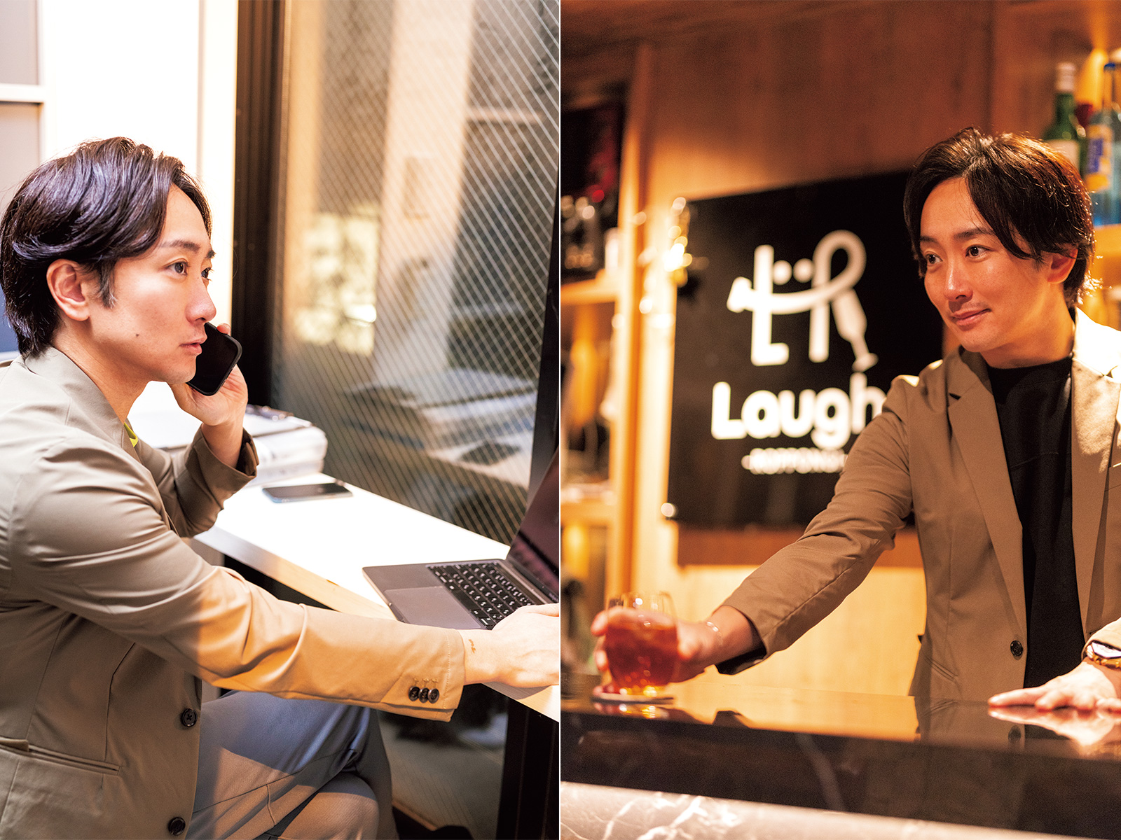 仕事は自己実現。起業後は自分のためというよりも社会貢献、世の中を良くしたいという気持ちです。経営するバーでは、お得意様がいらしたら、自らカウンターの中で接客することも。