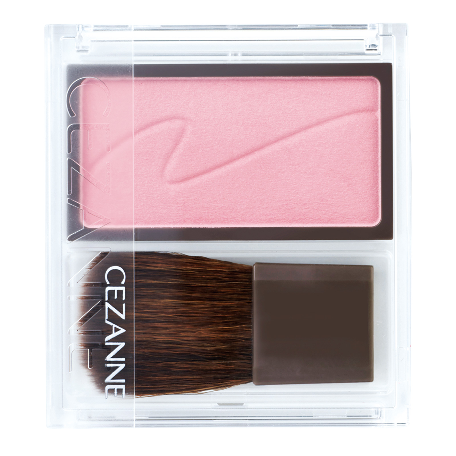 「頰に柔らかくなじむしっとり質感。大きめブラシで置くようにのせた後、優しくさするのがふんわり発色のコツ」色浮きせず質感と色が肌に溶け込む。¥550(セザンヌ化粧品)