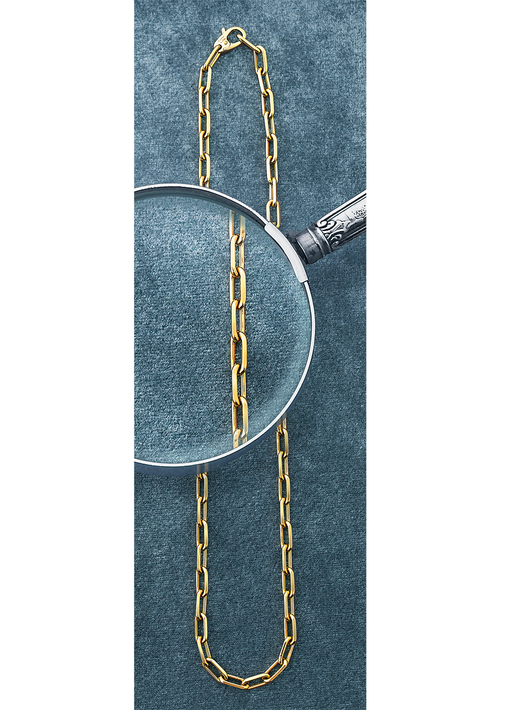 イエロー味が強く、素肌に存在感を放つのがカルティエのイエローゴールドの特徴とも言えます。「サントス」は、チェーンを繊細に繋いだ端正さが時代を超えて愛される理由です。ペンダントとの組み合わせや、クラスプの位置によって長さをアレンジできるので、着こなしの汎用性も高いです。「サントス ドゥ カルティエ」(YG/56cm)¥1,293,600(カルティエ/カルティエ カスタマー サービスセンター)