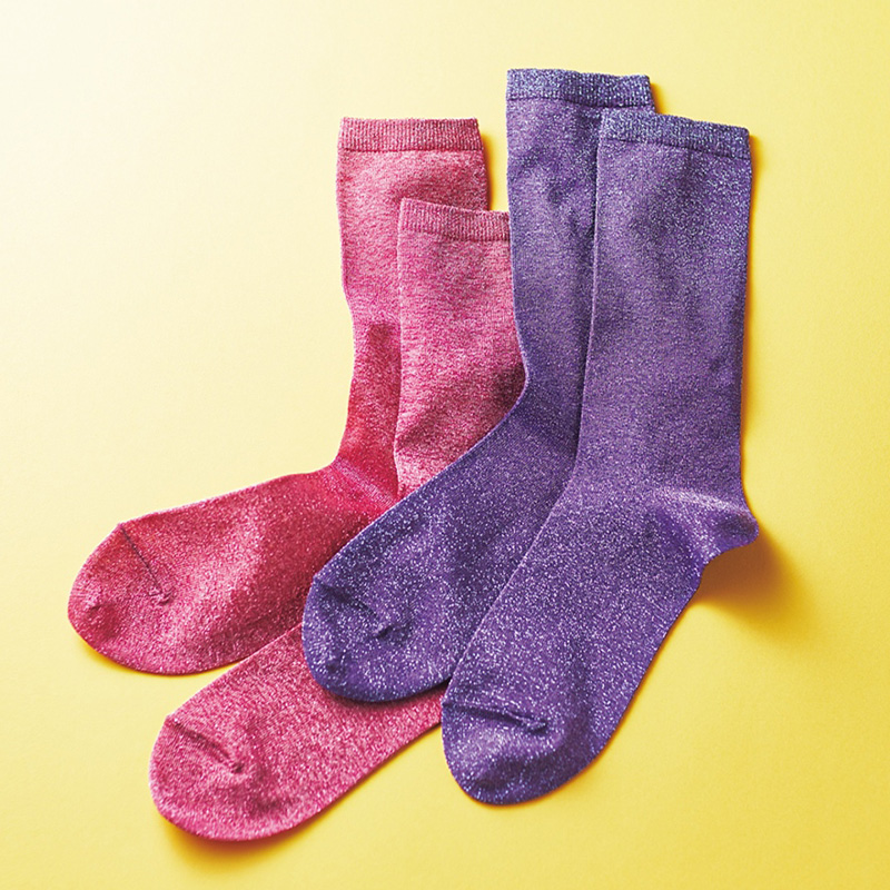 コーディネートに切れ味を加える派手色ラメカラー。チノやデニムの裾からチラッと覗かせるメンズ発想な足元スタイリングも楽しめそう。