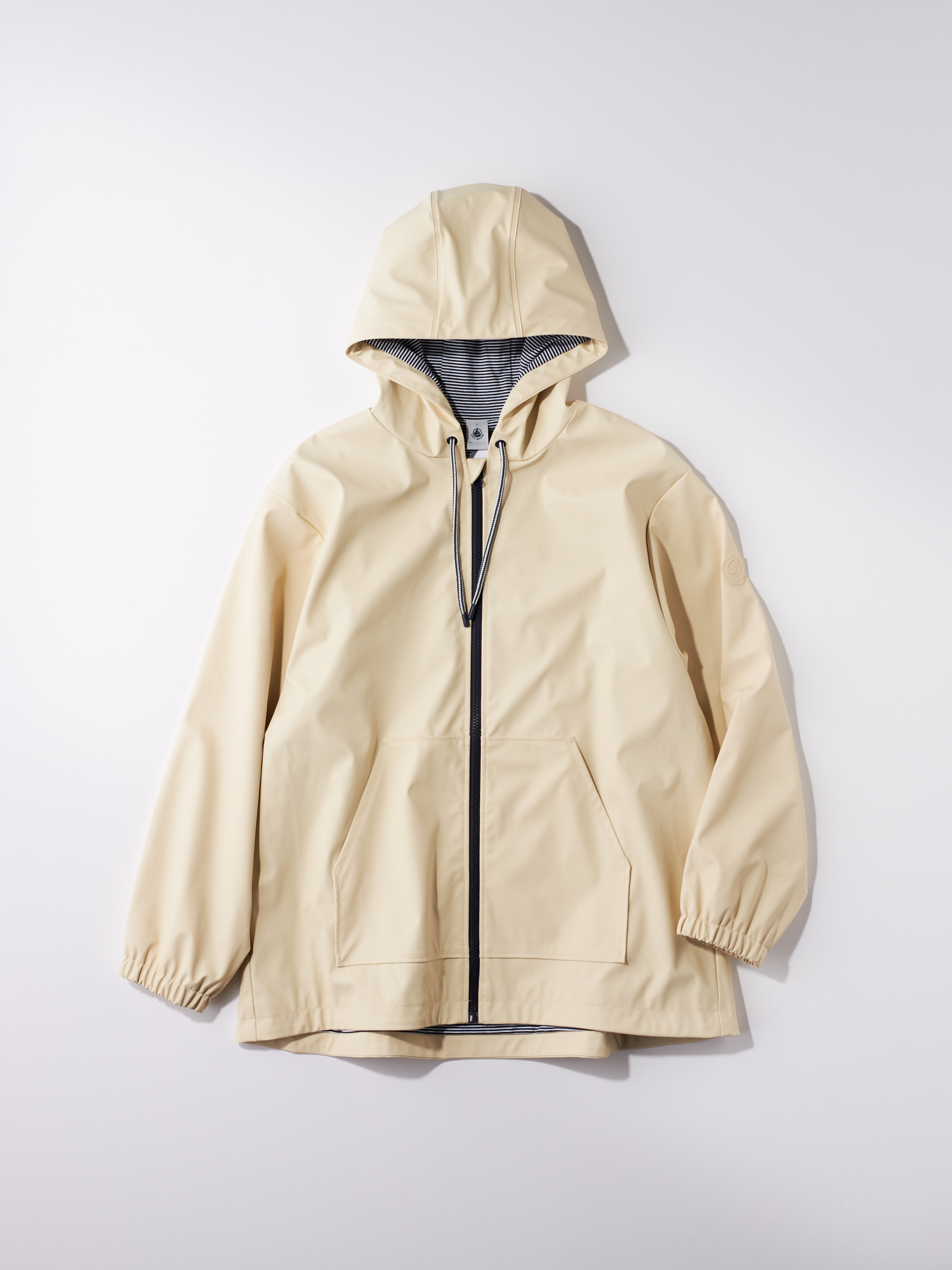 プチバトーからも防風と撥水機能を持つ実用性抜群のなパーカが出ているんです。裏地のボーダーがキュート♡。環境に配慮したリサイクル素材を使用しているのも、子どもの未来を考えるママにうれしいポイント。なんと洗濯機OKなので汚れる前提のアクティブシーンにもってこい。子どもサイズも展開しているので、親子でコーデを楽しむのもおすすめ。¥34,100(プチバトー)