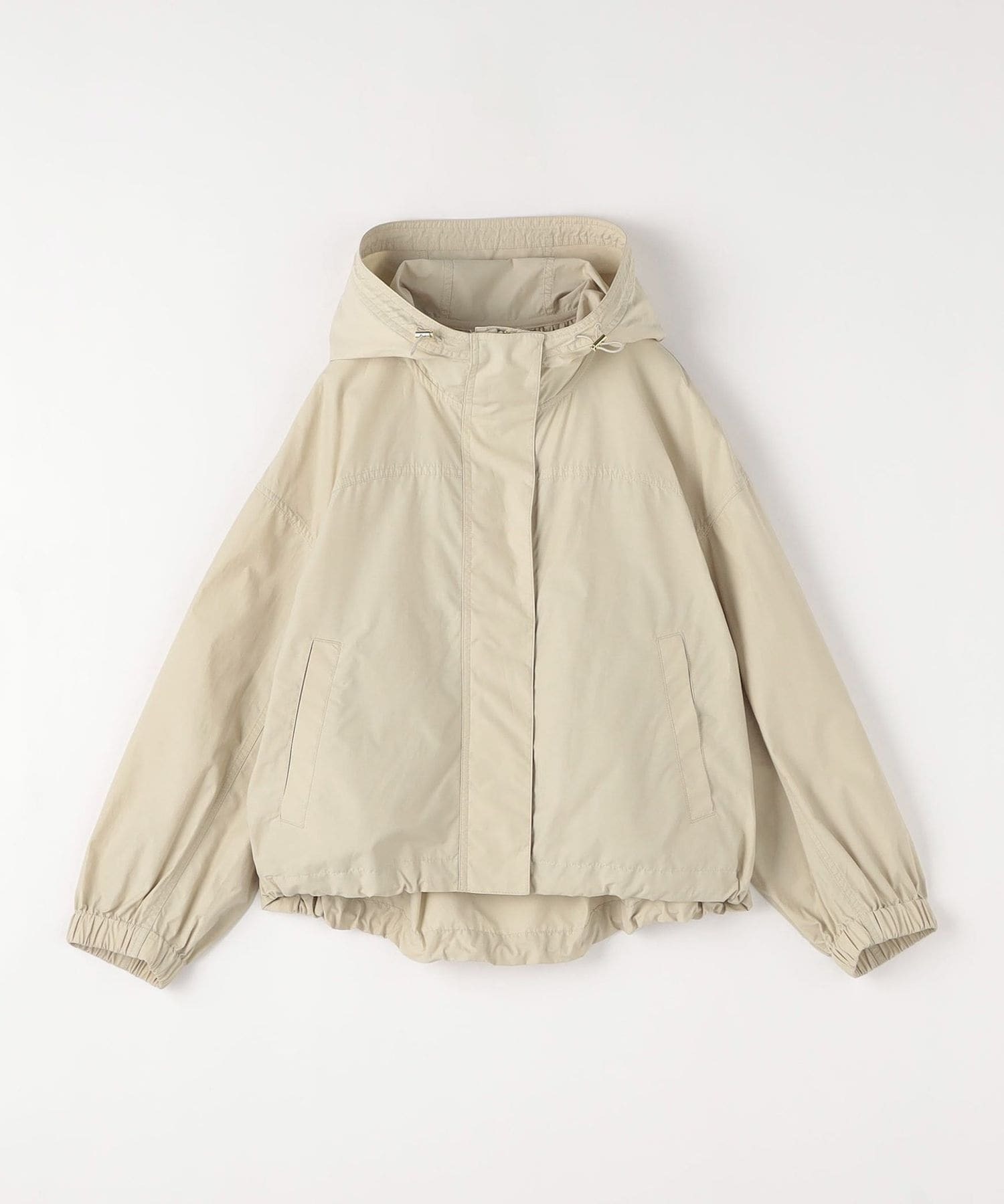 初夏にもさらっといけちゃうコットン×ナイロンの風通しのよいフードブルゾン。身頃はゆったり、着丈はコンパクトになっており、ゆるゆるシルエットにならずきれいめに着られます。。裾のドローコードを絞ればシルエットの変化も楽しめるのも◎