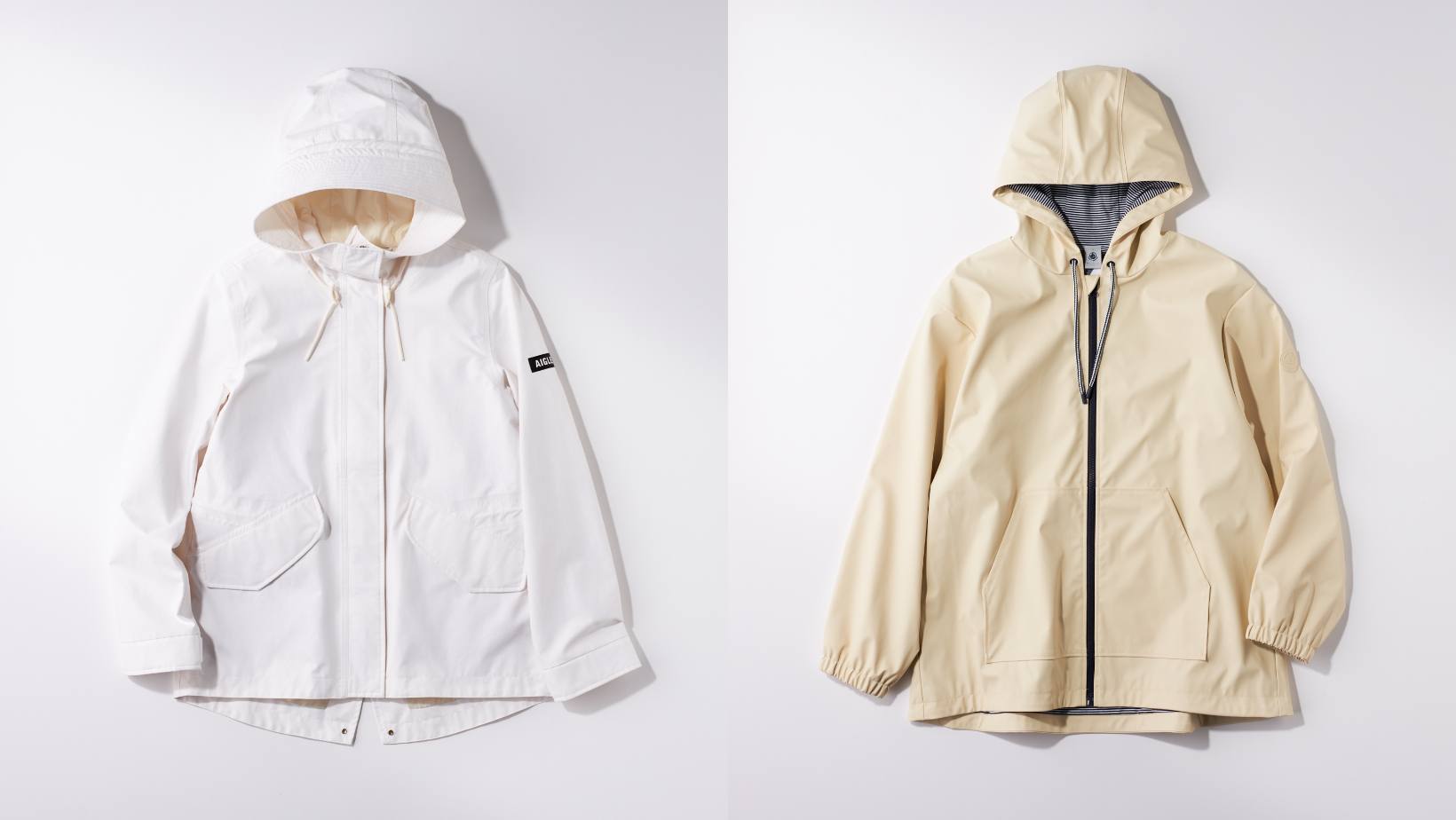 防水・透湿・防風性とアウトドア行事に求める条件3拍子揃ったGORE-TEXを採用。クリーンな白なので、スウェットと合わせてもスポーティになりすぎずシティっぽい印象に寄せられます。¥57,200(AIGLE)