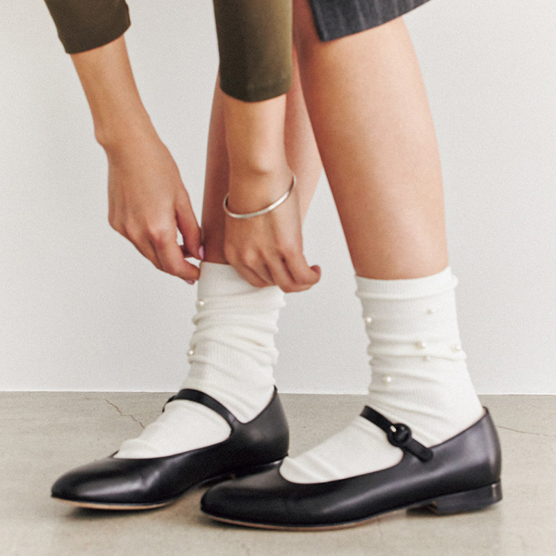 甘派が大好きなパールは、ソックスで取り入れるのが今年風!