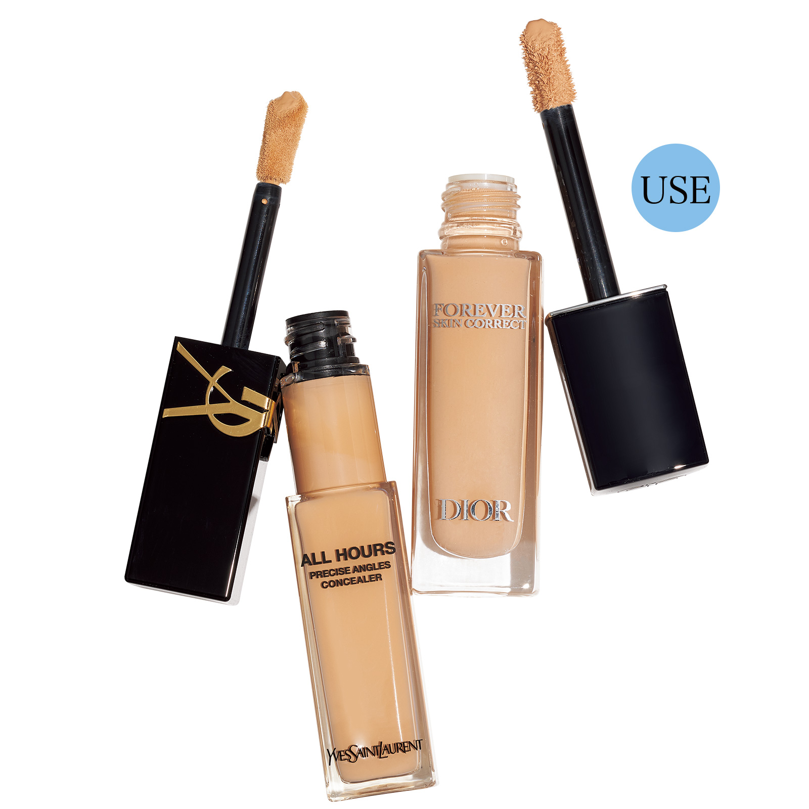 左:理想の立体感を叶える薄膜タイプ。オールアワーズ コンシーラー LC2 15ml ¥5,940 (イヴ・サンローラン・ボーテ)右:ハイカバーで素肌のようにナチュラル。プロのファンも多い。ディオール スキン フォーエヴァー スキン コレクトコンシーラー 1N 11ml ¥5,390(パルファン・クリスチャン・ディオール)〈モデル使用コスメ〉