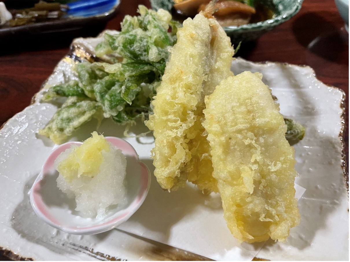 地元で採れた山菜の女王とも呼ばれるコシアブラの天ぷらや、新潟北部で水揚げの多い柳カレイの天ぷらなど、ふんわりサクサクとしていて超絶品。