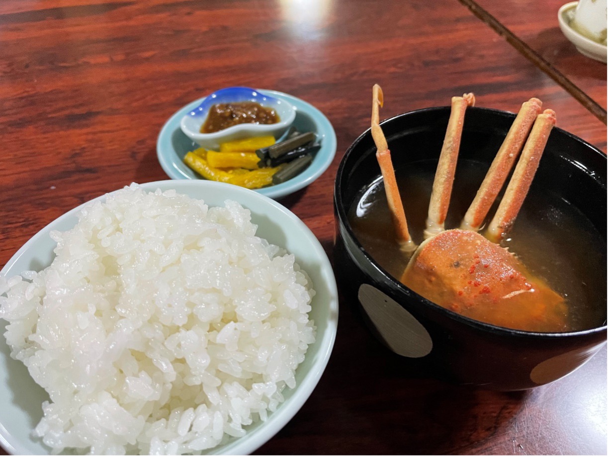 お櫃で運ばれる岩船産のコシヒカリのご飯はその美味しさから残さず食べきる方が多いそう。丁寧に引かれた出汁が素晴らしく、季節によってはカニ一杯付のプランなども選べます。