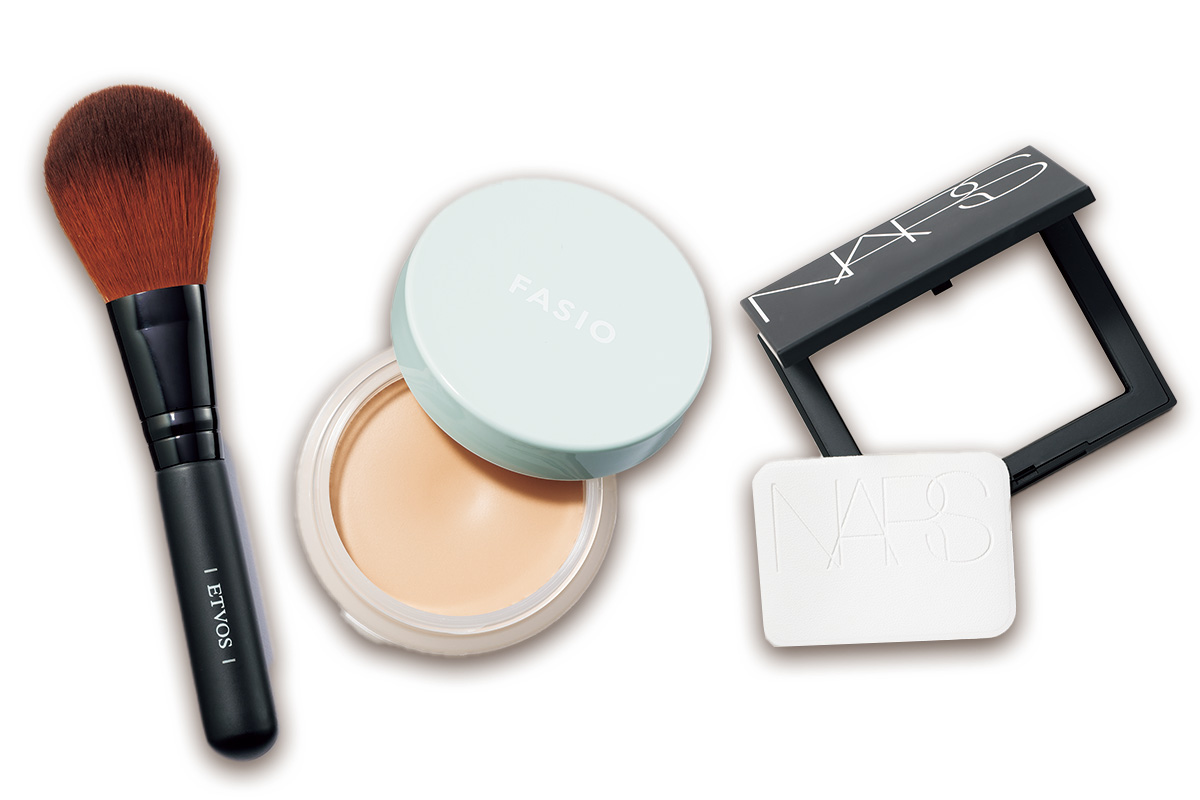 「開き毛穴がたるんだり、くすみや赤みも目立つ大人の毛穴。隠そうとして毛穴にファンデを埋めすぎると逆に目立つので、塗りすぎには注意を。上手にカバーするには、ベースアイテムを毛穴にも均一にふわっとのせることが重要。そのためにブラシがマスト。シアーマットに仕立てて一日中毛穴レスに」