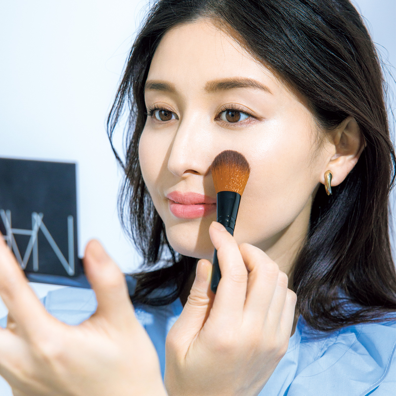 パウダーをブラシに取り肌にふわっとのせてベースを定着させます。朝のサラサラ肌が復活!