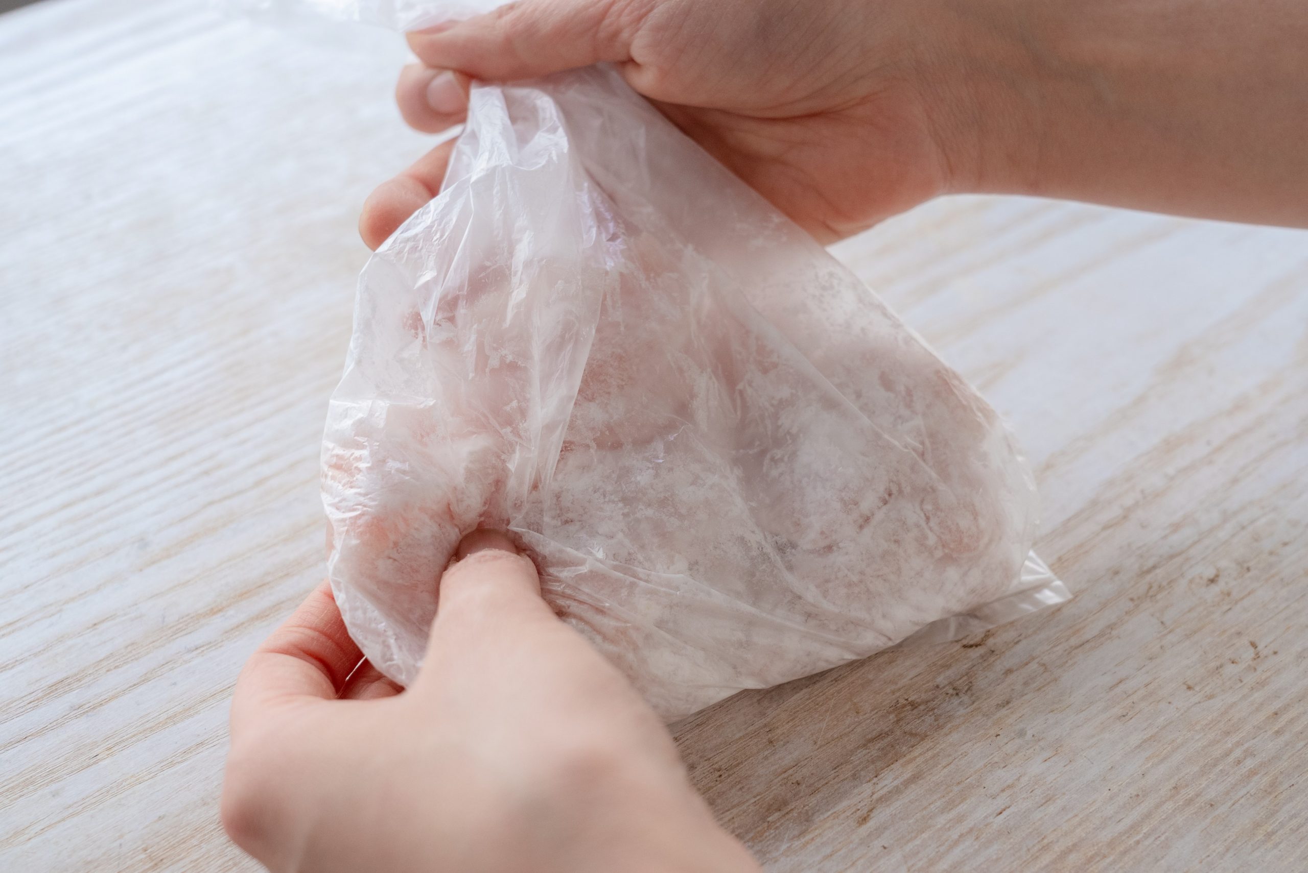 ③鶏むね肉をポリ袋に入れ、片栗粉をまぶす。