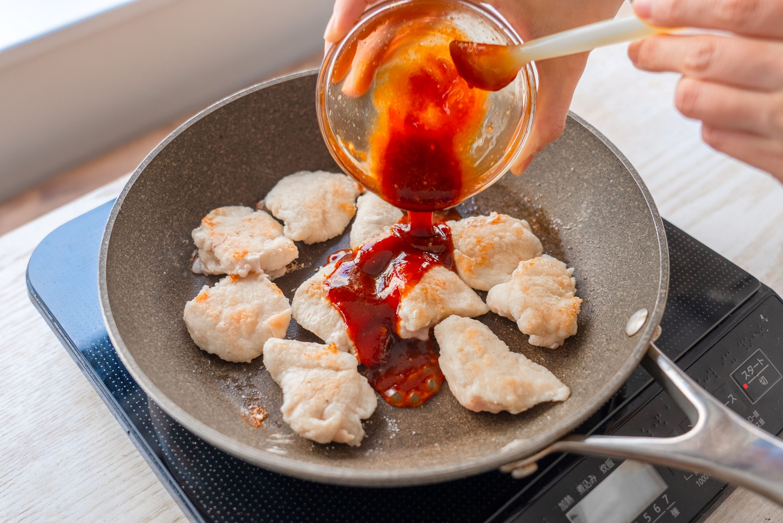 パンチのある味付けにごはんが進みます。ヘルシーな鶏むね肉とゆで卵で、たんぱく質もしっかり摂れるので、運動後の食事や、ダイエットのメニューにもぴったりです。お弁当のおかずにも喜ばれそう。唐揚げのアレンジというイメージが強かったヤンニョムチキンですが、揚げずに作れるのはありがたい!フライパンの洗い物も減らせて、時短でできるので、お腹が空いて帰ってきた子どもたちもすぐに満足させてあげられそうです。