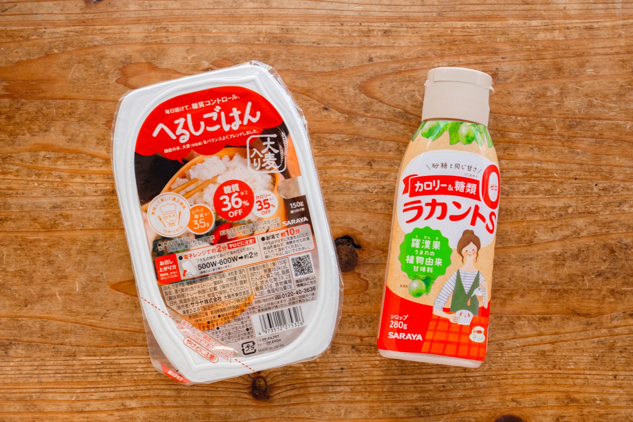 左・へるしごはん 炊飯 150g ¥202 右・ラカントSシロップ P 280g ¥556(ともにSARAYA)